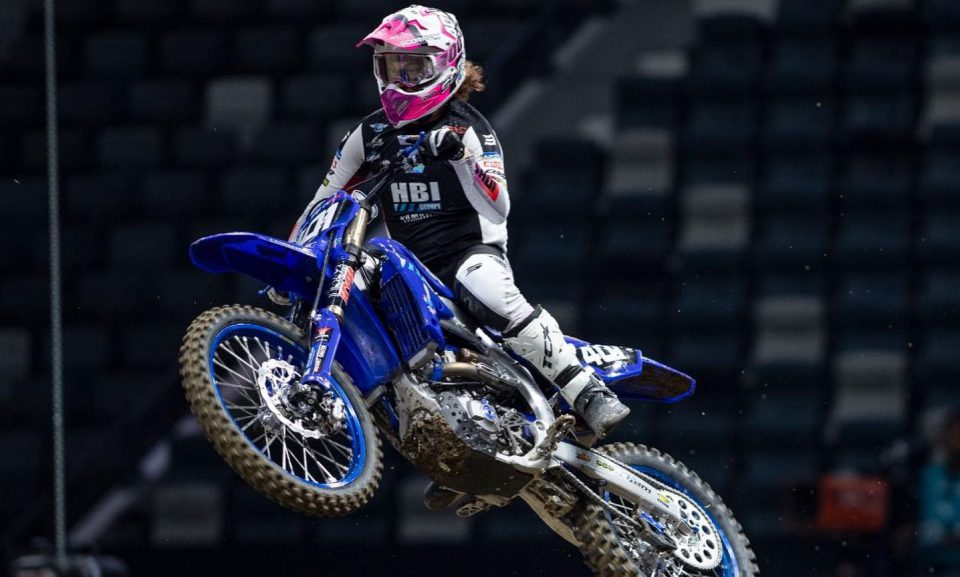 De Amerikaan Jace Owen kwam tijdens de laatste wedstrijd om het wereldkampioenschap supercross ongelukkig ten val.