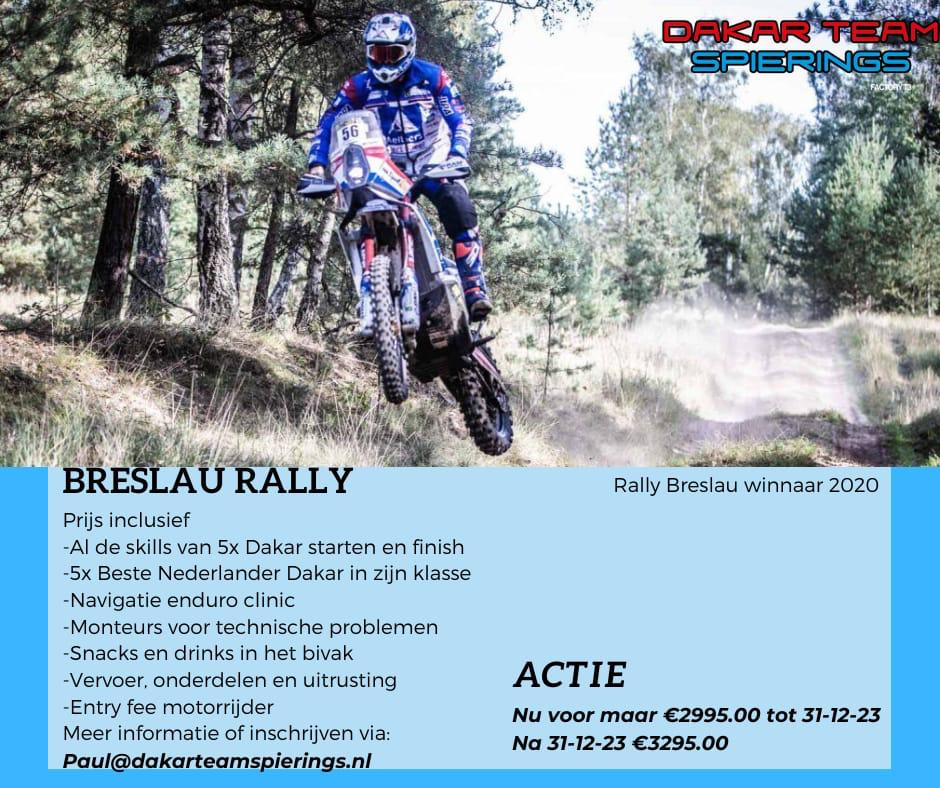 Beleef de Breslau Rally onder leiding van Dakar rijder -finisher Paul Spierings, en Breslau winnaar van 2020! Ontdek een van ,s werelds mooiste bos/zand rallys.