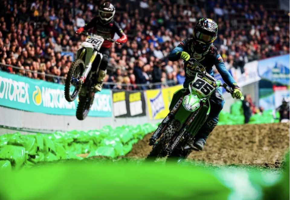 Cedric Soubeyras van het van der Vegt Motors Kawasaki team heeft de internationale supercross in Goes weten te winnen.