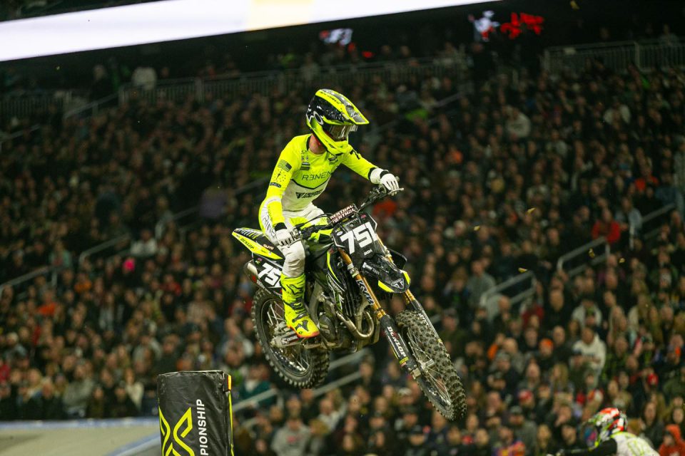 Evan Ferry van Triumph Racing maakte afgelopen zaterdag zijn debuut tijdens de eerste wedstrijd van het East Coast Lites Supercross Kampioenschap in Detroit. Hij kwalificeerde zich voor de finale maar na de start ging het al snel mis. Ferry stond aan de buitenkant maar kwam goed weg toen het starthek viel. Echter in de eerste bocht kwamen er verschillende rijders vallend tegen hem aan waardoor hij van het circuit schoot in de boarding belandde. De wedstrijd van Ferry zat er op maar gelukkig valt het allemaal mee en kan hij er bij de volgende wedstrijd in Arlington weer terug bij zijn.