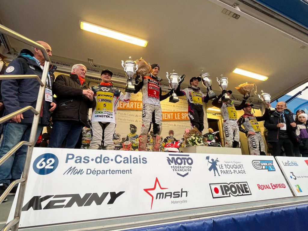 Afgelopen zondag had Jeremy de laatste wedstrijd van het Franse zandkampioenschap in Le Touquet op de planning staan. De 3 uur durende, zwaarste strandrace ter wereld, met 1400 deelnemers aan de start. Vrijdags werden de motoren gekeurd en zaterdags moesten de motoren verplicht in het afgesloten park ferme opgesteld worden en een nachtje buiten slapen. Dit midden op het marktplein in het pittoreske stadje Le Touquet waar voor de 48e keer de wedstrijd plaatsvond.