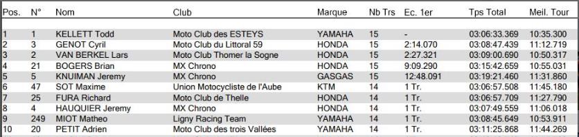 Jeremy kon zijn stijgende lijn voortzetten en wist gaandeweg de wedstrijd plaatsen goed te maken. Na 2 uur wedstrijd bezette hij een 6e plaats, op deze positie ging hij zijn tweede pitstop maken. Deze verliep ook weer op rolletjes voor Jeremy en het team. Met nog een kleine 60 minuten wedstrijd te gaan, moest hij wel één plaatsje inleveren na deze pitstop. Zijn concurrenten gingen 1 ronde later tanken, wat betekende dat Jeremy de 6e plaats terug veroverde. Het rijden ging erg goed en hij kon zijn rijtempo hooghouden, om 30 minuten voor de finish de 5e plaats over te nemen. Hierbij bouwde hij ook gelijk een mooie voorsprong op, op de 6e man in de wedstrijd. Met nog 2 ronden te gaan moest Jeremy nog een korte pitstop maken voor benzine. Door de harde tegenwind en het natte zand was het parcours extra zwaar en was het benzineverbruik extreem hoog. Net voor het einde kwam Jeremy op de wave sectie zonder benzine te staan. Jeremy wist zijn motor duwend naar de pits te brengen om hier de laatste benzine erin te doen voor de laatste ronde. Hij was de laatste van 5 rijders die in dezelfde ronde reed als de winnaar en moest zijn laatste ronde boven de tijdslimiet van 3 uur voldoen. Deze ronde verliep goed en Jeremy wist de wedstrijd op een 5e plaats af te sluiten met een totaaltijd van 3:19.21 uur. Een topprestatie van Jeremy die als scholier en privécoureur zich goed staande hield tussen dit internationale geweld. Het hele team, monteur en pit crew, is ook mede verantwoordelijk voor dit mooie resultaat.