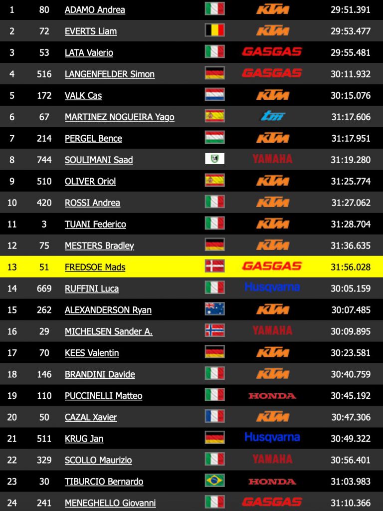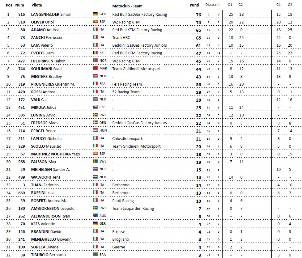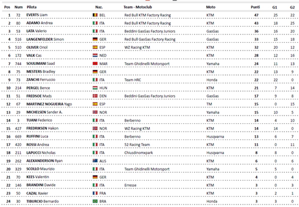 Lata werd derde voor Simon Laengenfelder, die in de eerste bocht ten val was gekomen. Laengenfelder kwam sterk terug naar voren en wist tijdens de wedstrijd de snelste rondetijd neer te zetten. Met deze vierde plaats verzekerde Laengenfelder zich tevens van de Italiaanse titel in de MX2 klasse.