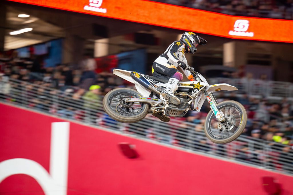 450SX contender Stewart was ranked P6 in qualifying inside the sizable State Farm Stadium, before racing to a convincing second-place finish in his Heat Race, and taking his Husqvarna Motorcycles FC 450 Rockstar Edition into the Main Event.