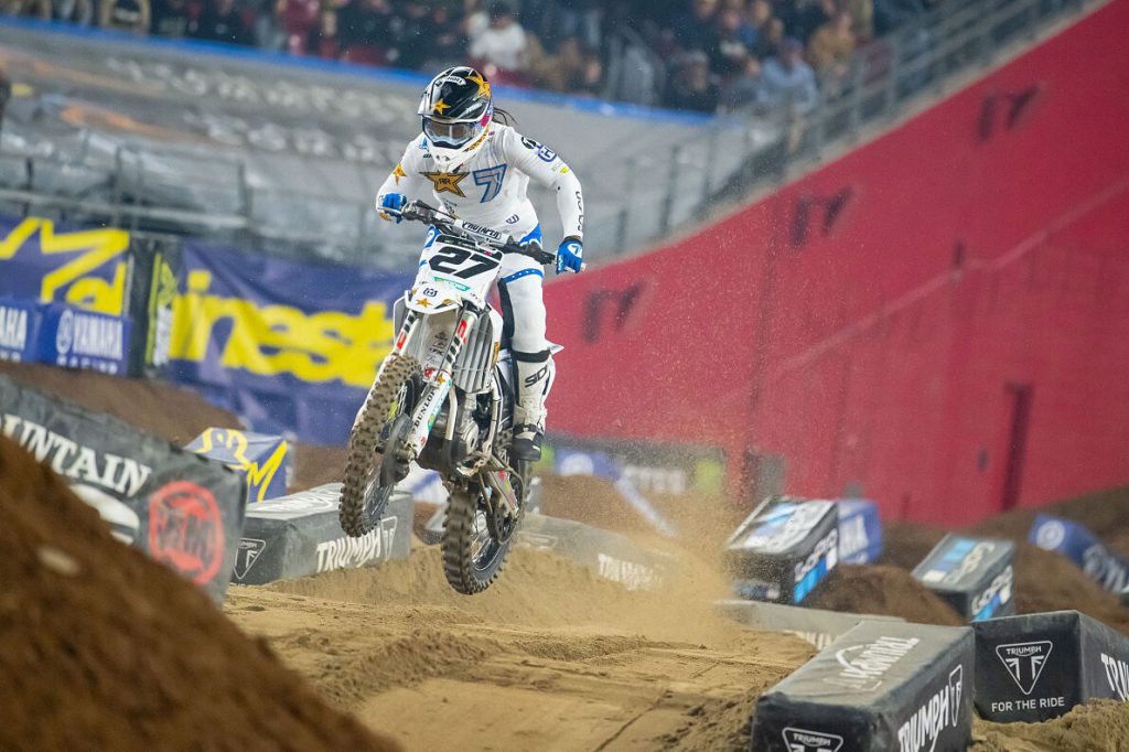 “Glendale went fairly well for me,” said Stewart. “Qualifying was decent with P6, then we finished with P2 in the Heat Race, which felt really good to be up there. Main Event, not a great start, so I just had to pick my way through the field and got all the way back up to P8. My riding was great, although you need to get the start in this class, so we’ll work on those heading into Arlington.”