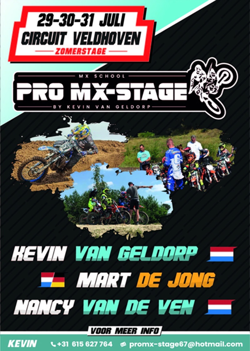 Op 29, 30 en 31 juli organiseert Pro mx-stage een zomer stage te Veldhoven.