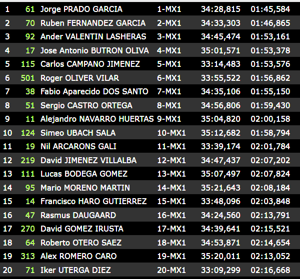 Jorge Prado heeft de tweede manche van het Spaans Kampioenschap in Lugo weten te winnen en verzekerde zich hiermee van de eindzege. Prado reed sterk maar er gebeurde in de beginfase van alles. Ruben Fernandez nam kopstart en toen Prado de aanval op hem inzette, raakten beide rijders elkaar waardoor Prado ten val kwam. Hierdoor kreeg Fernandez een voorsprong van meer dan tien seconden maar Prado begon het gat gedurende de wedstrijd te dichten. Toen hij binnen de vijf seconden van Fernandez kwam, viel Fernandez waardoor Prado de leiding over kon nemen en onbedreigd naar de zege kon rijden.