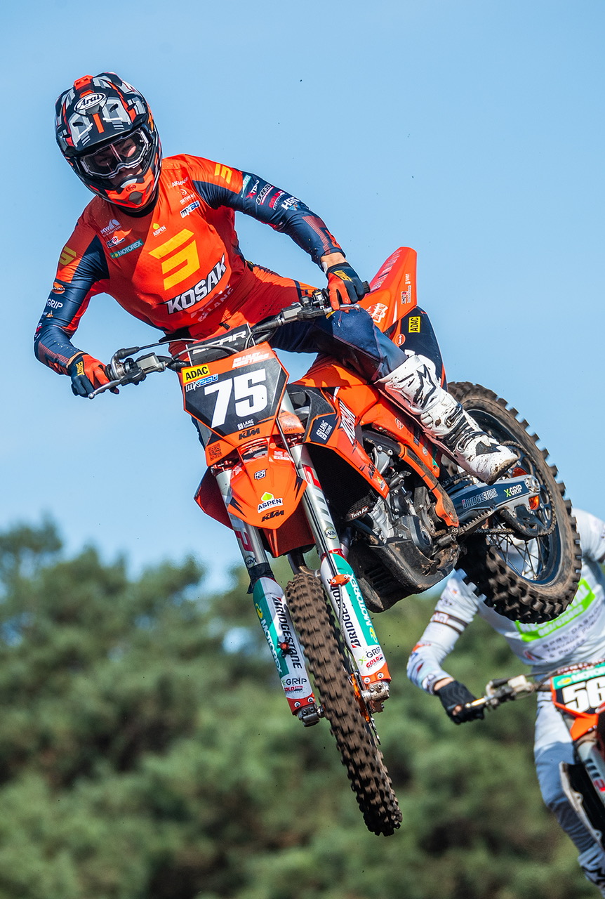 Naast het volledige Europees kampioenschap 250cc werkt de 16 jarige Kosak KTM Racing piloot tevens het volledige ADAC MX Youngstercup kampioenschap af.
