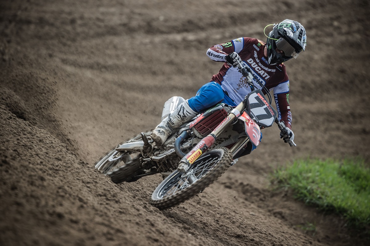 The Borgo Panigale prototype, ridden by Alessandro Lupino, wins race one and finishes second overall in the debut of Ducati in Motocross