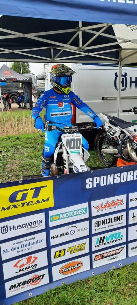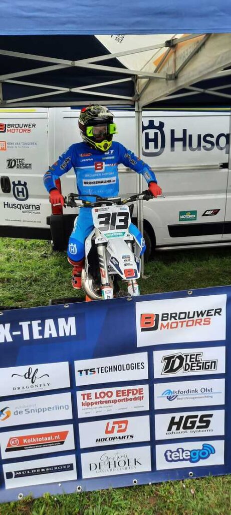 Hidde is nieuw in het GT Husqvarna team. Hij is 14 jaar en rijdt in de DMX wedstrijden in de 85cc klasse. Het was zijn eerste DMX wedstrijd en hij kende de baan in Arkel niet. Hierdoor was het in de training nog even wennen maar toch zette hij een nette tiende tijd op de klok.