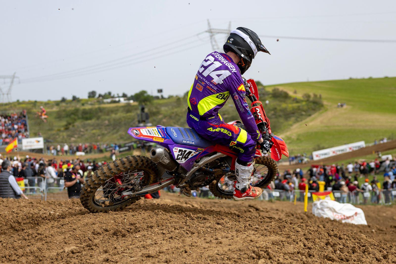 Voor de MX2 klasse was de wedstrijd in Spanje na Argentinië de tweede wedstrijd voor de punten. Hakon Osterhagen kende een moeilijke kwalificatieheat op zaterdag. Na een slechte start kwam hij moeilijk in zijn ritme en merkte hij dat de snelheid er nog niet voldoende is. Hierdoor kwam hij niet verder dan een eenentwintigste plaats. In de eerste manche op zondag stuurde Hakon zijn Honda net binnen de top twintig door de eerste bocht. Gedurende de wedstrijd kwam hij goed terug naar voren en wist op een veertiende plaats over de finish te komen. In de tweede manche pakte Osterhagen een soortgelijke start. Gedurende de wedstrijd vocht hij vele duels uit en wist met een twintigste plaats opnieuw een WK punt te pakken.