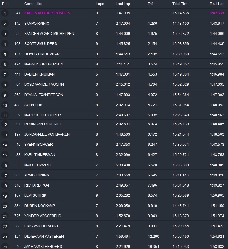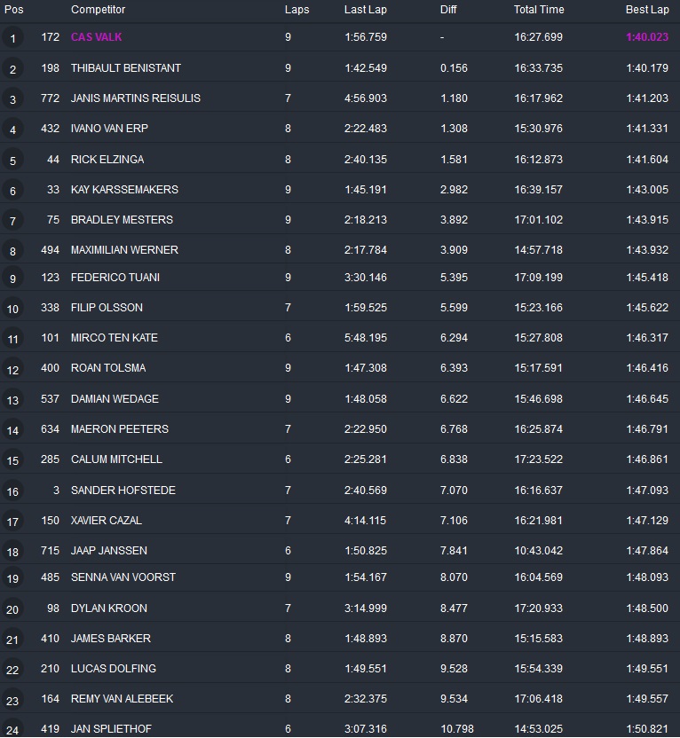 Klik op de volgende link voor alle uitslagen: https://speedhive.mylaps.com/livetiming/FC2DF9159DC2E312-2147483684
