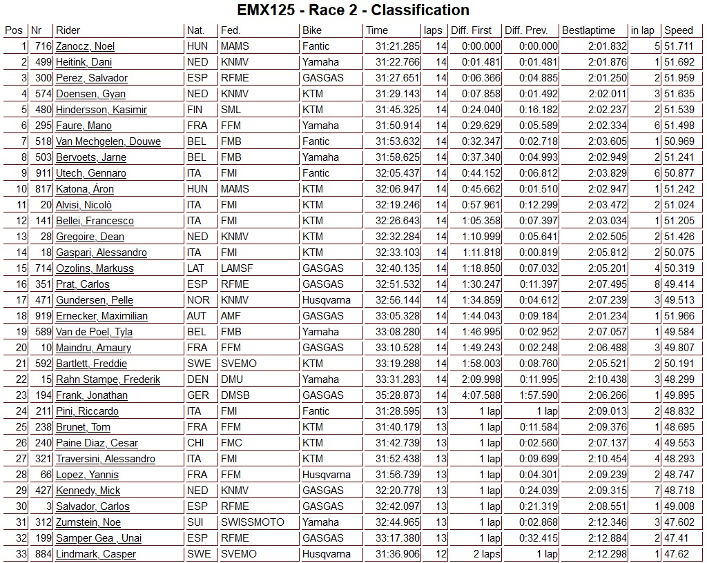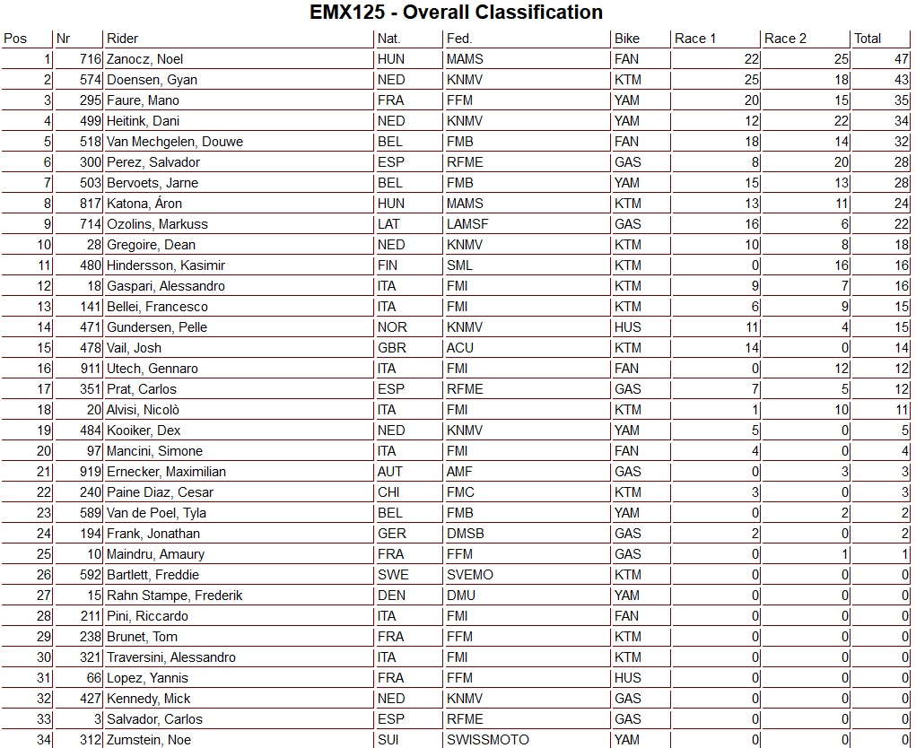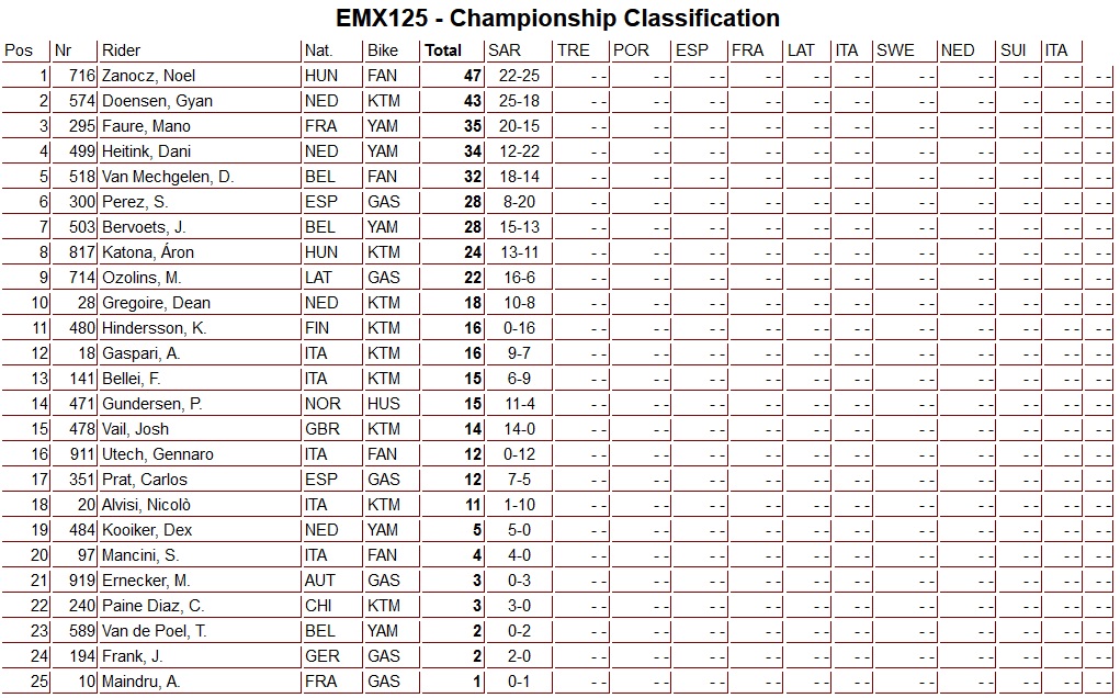 Dani Heitink heeft een ijzersterke tweede manche gereden in Sardinie. Heitink pakte eindelijk een goede start en liet hiermee zijn potentieel zien. Heitink vocht de hele wedstrijd mee in de kopgroep en werd tweede achter Noel Zanocz. Gyan Doensen kwam bij de start ten val en kwam helemaal vanaf de laatste plaats terug naar een vierde positie. Hiermee miste hij de eindzege en werd tweede in het dagklassement.