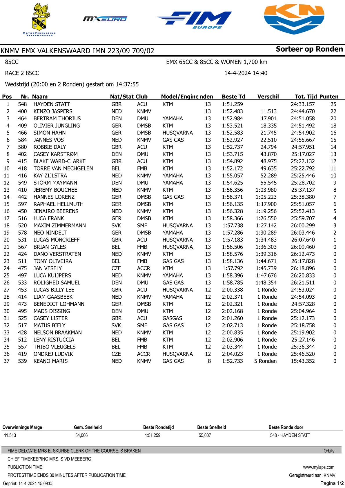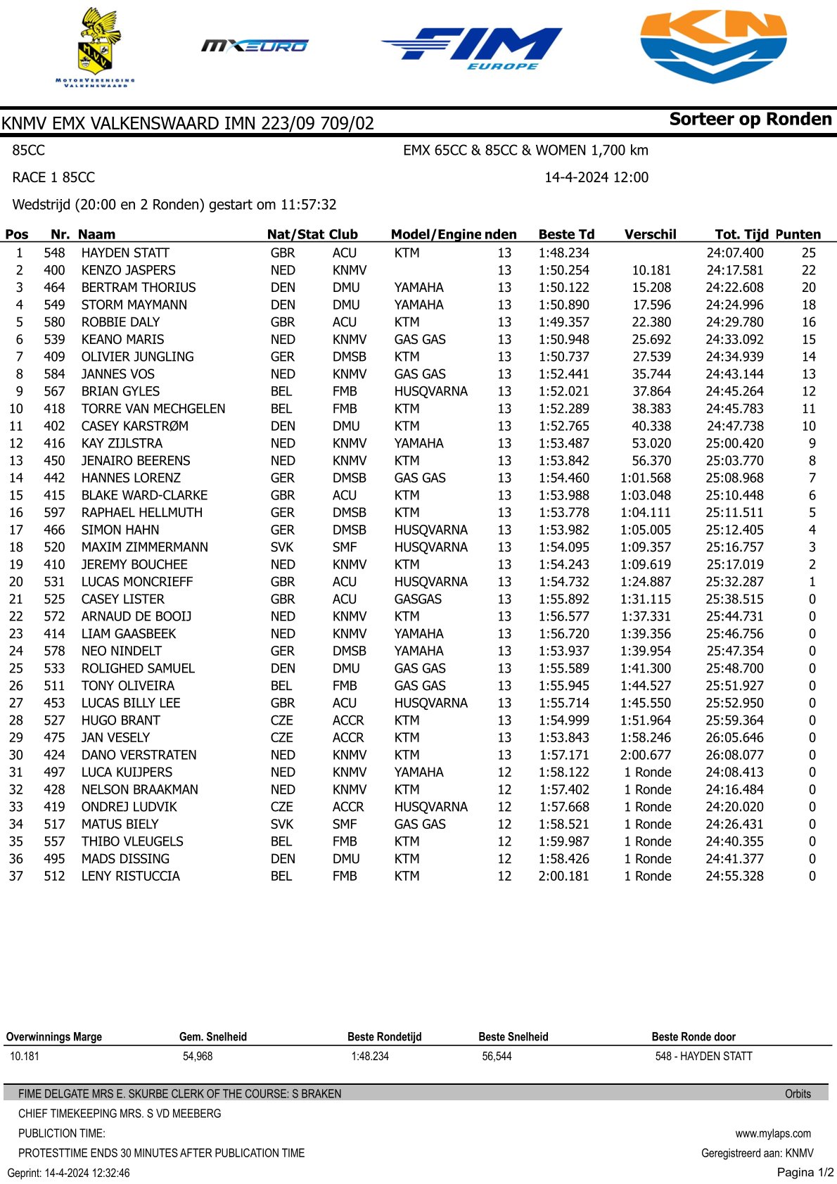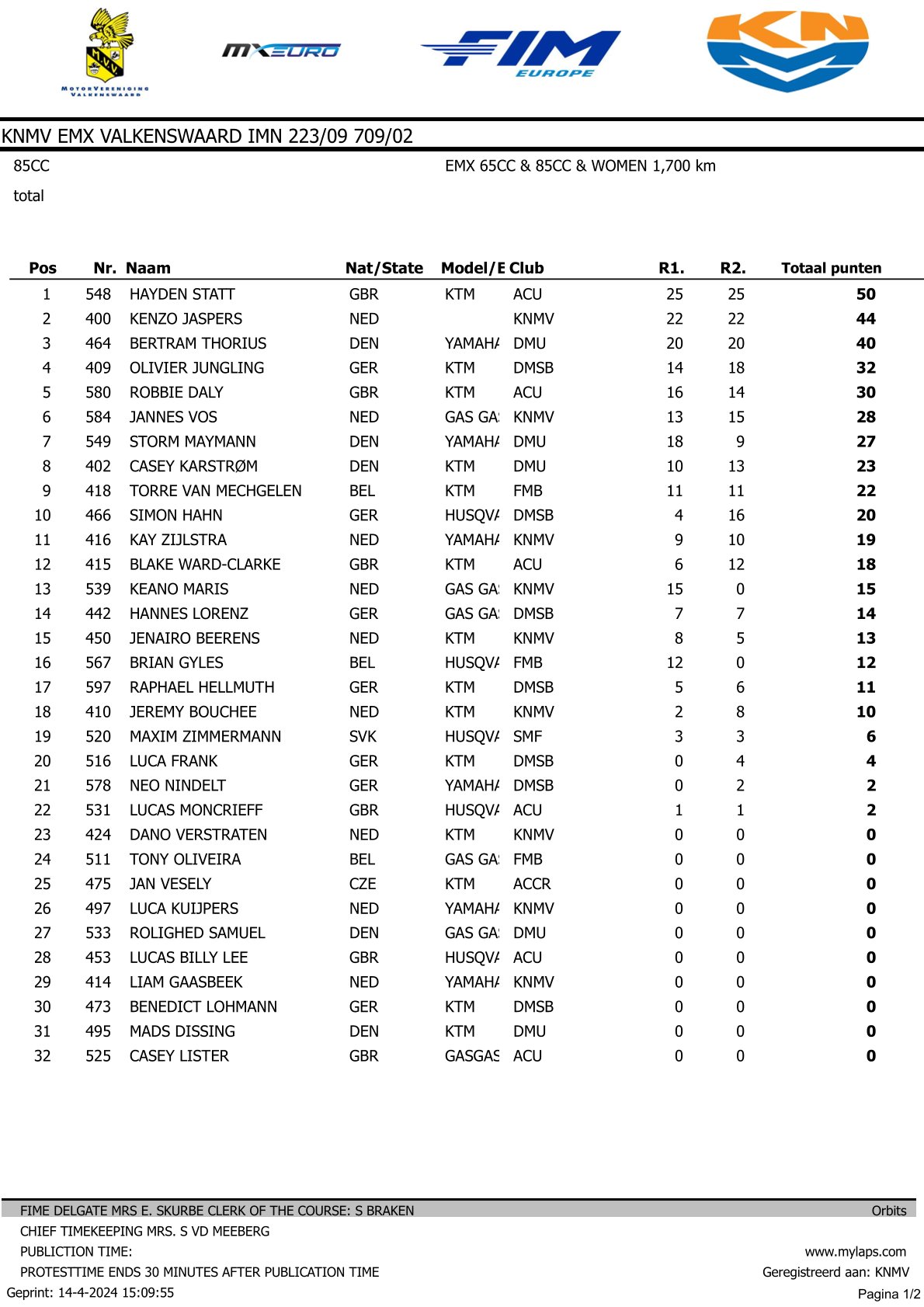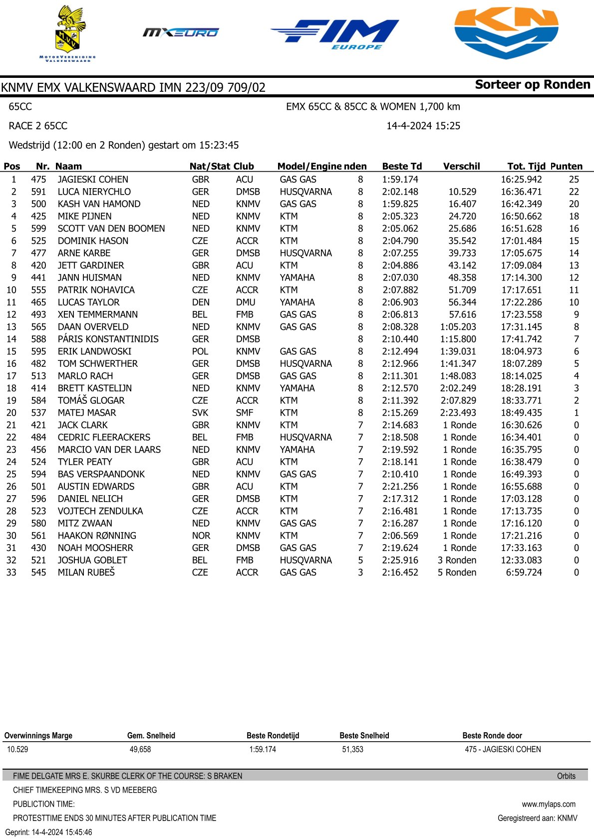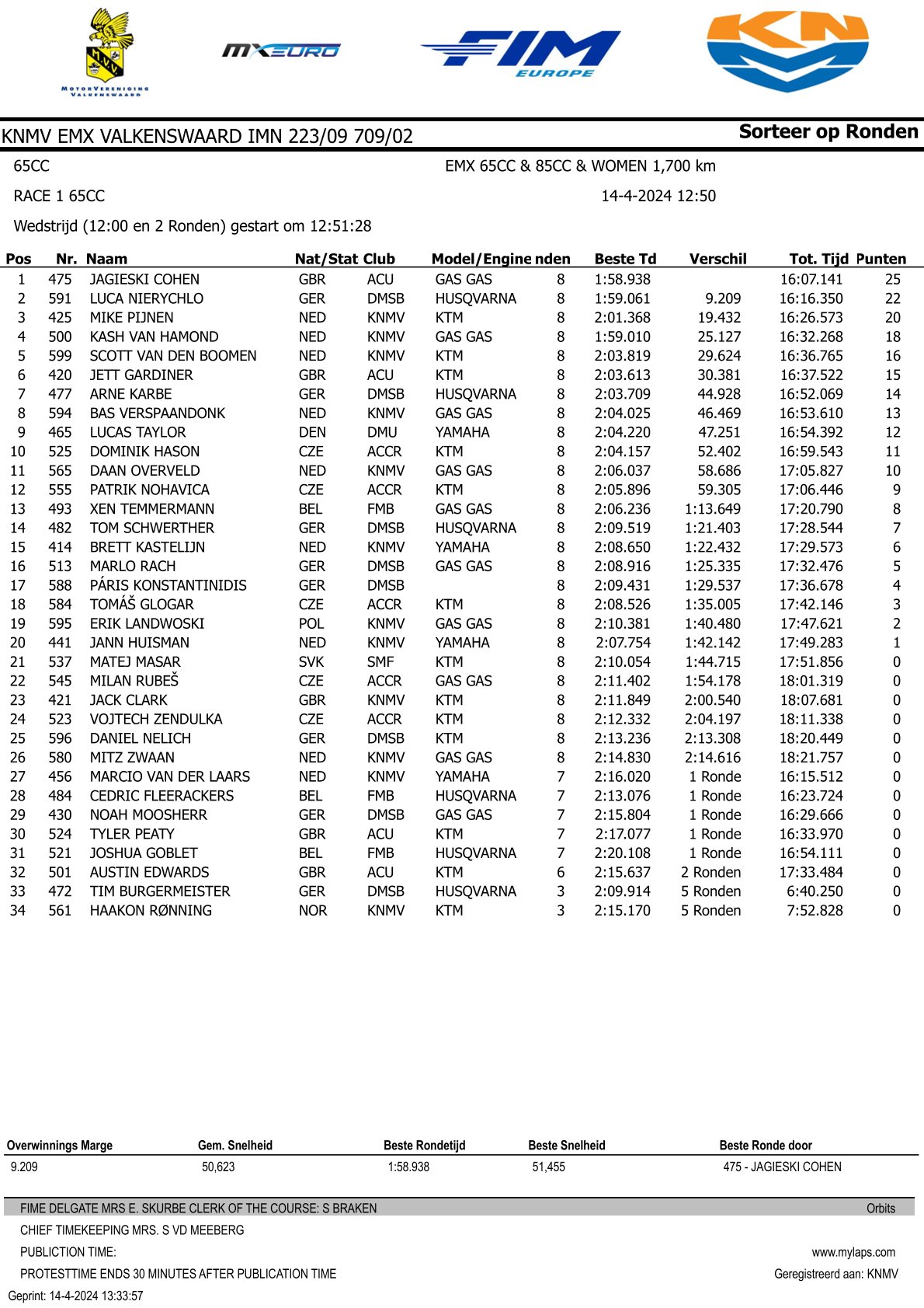 Uitslagen EK Jeugd Valkenswaard by motocrossplanet14 april 202414 april 2024 Vandaag wordt de tweede selectiewedstrijd van het Europees kampioenschap verreden in Valkenswaard. Bekijk hieronder alle uitslagen. ..