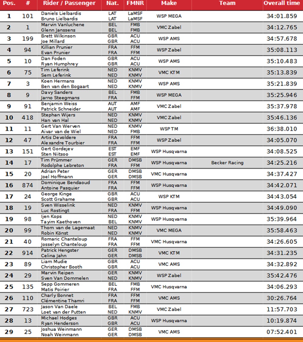 Lielbardis wint eerste manche WK Zijspancross Portugal by motocrossplanet21 april 2024 Gebroeders Lielbardis hebben de eerste manche van het WK Zijspancross in Portugal weten te winnen. Bekijk hieronder de uitslag van de eerste manche. Eerste manche WK Zijspancross: