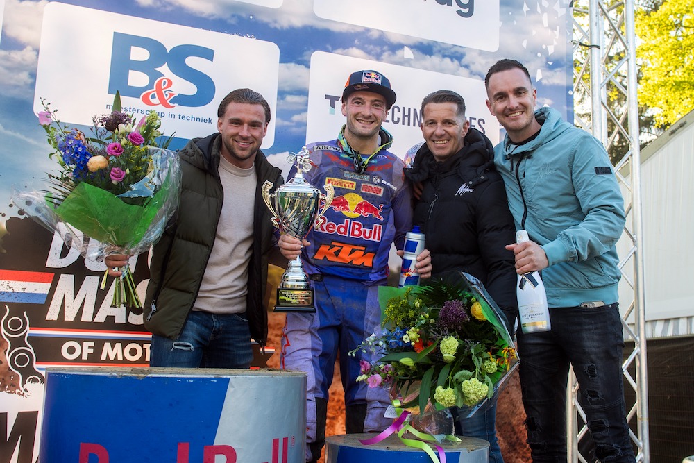 Met pijnlijke ribben kwam Jeffrey Herlings aan de start in de 500 klasse. Door een valpartij bij de start van de eerste manche maakte hij het nog spannend maar Herlings kwam sterk terug naar voren en wist de schade met een derde plaats te beperken. In de tweede manche wist hij gelijk in de beginfase een gat te slaan en zette de wedstrijd naar zijn hand. Met deze resultaten werd hij tweede in het dagklassement, wat voldoende was om zijn titel in de 500 klasse te prolongeren. Romain Febvre wist de wedstrijd in Markelo te winnen met een 1-2 in de manches. Febvre is een goede zandrijder en liet dit in Markelo nog maar eens zien. In de wedstrijden in Harfsen en Oldebroek was Febvre telkens tweede en met de winst in Markelo eindigde hij op een tweede plaats in de eindstand. Calvin Vlaanderen reed twee solide manches en kwam beide keren als derde over de finish.