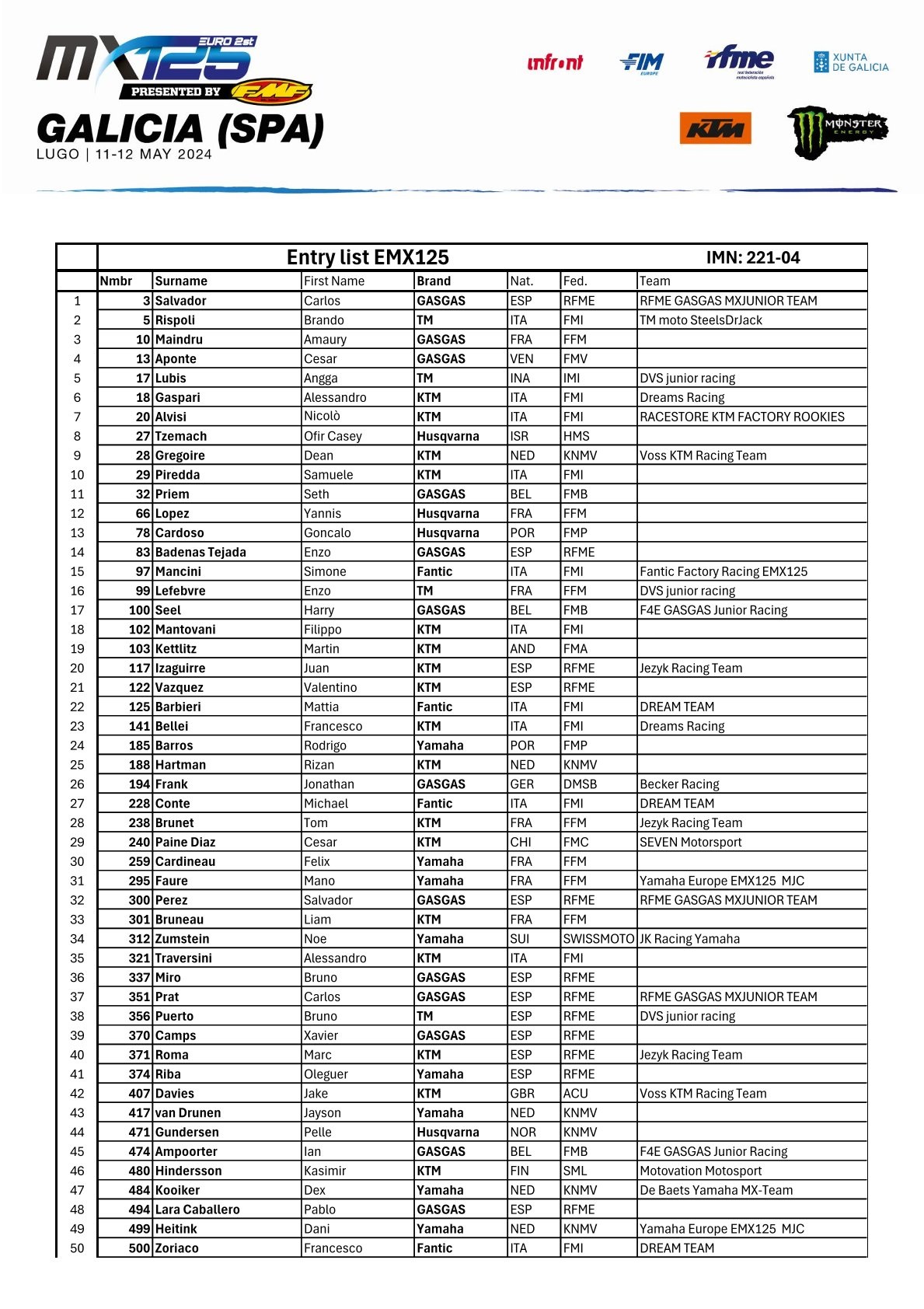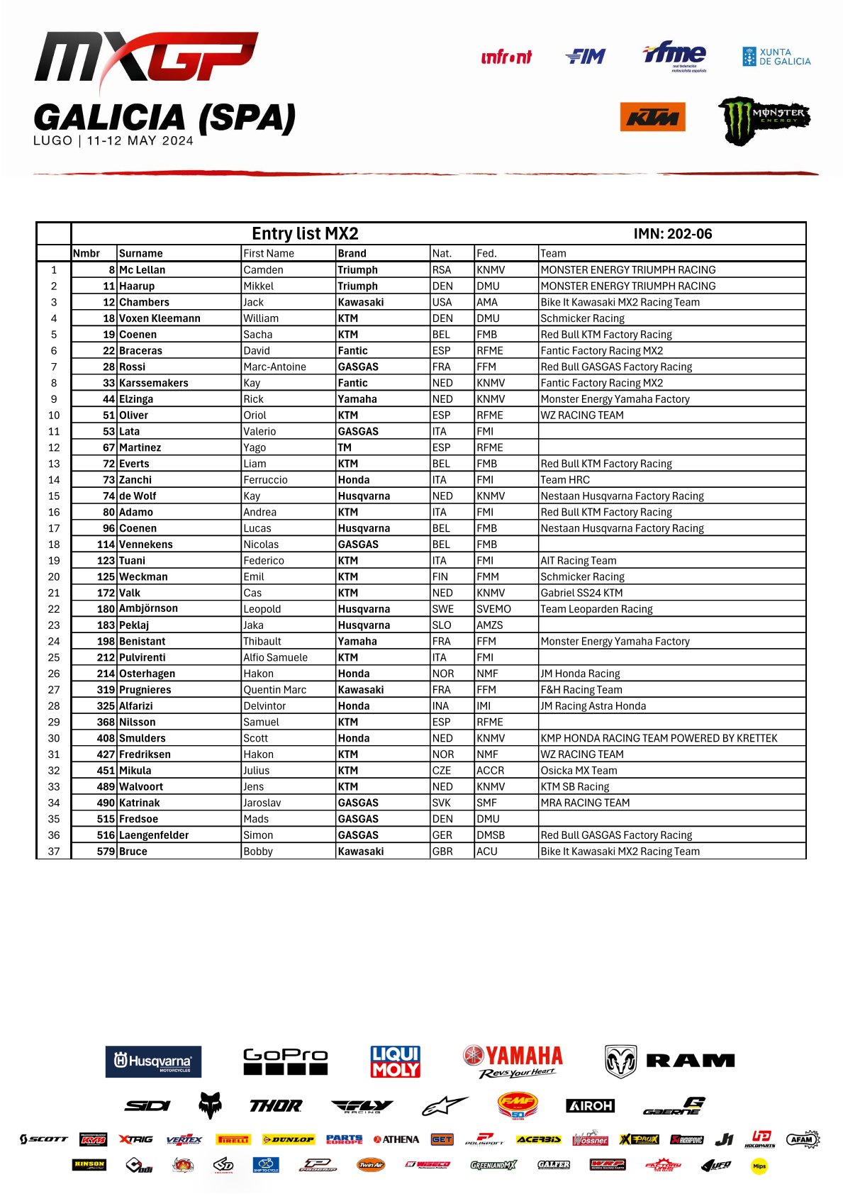 Wie staan er aan de start bij de MXGP in Galicia by motocrossplanet6 mei 2024 Aankomend weekend wordt de zesde wedstrijd van het wereldkampioenschap MXGP verreden in Lugo, Spanje. Naast de MXGP en MX2 klasse rijden ook de 125cc en WMX klasse hier een wedstrijd voor de punten! TIMETABLE