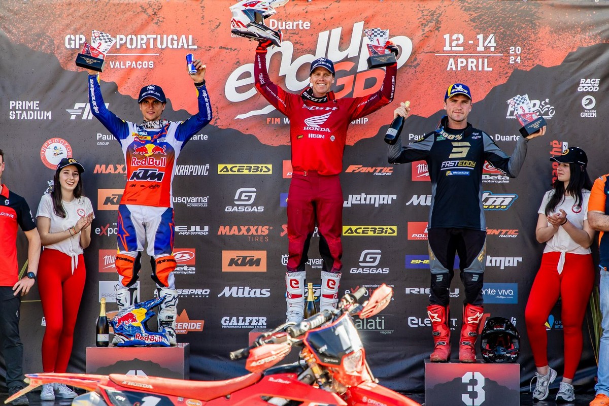 McCanney: “(glimlacht) Toegegeven, de omstandigheden waren erg Brits, omdat het er modderig was en zo. Toch was het een hele gave ervaring. Josep (Garcia) was duidelijk net terug van een blessure dus hij stond ’n beetje op achterstand. Het was vijf jaar geleden dat ik voor het laatst won. Dat is best een lange tijd waarin er veel is gebeurd. Het niveau van de rijders in EnduroGP is zo hoog en er zijn zoveel rijders die op slechts een handvol seconden van elkaar eindigen. Dus om met een privéteam op de hoogste trede van het podium te staan is heel bijzonder. Uiteindelijk draait het team vooral om mij en drie andere jongens”