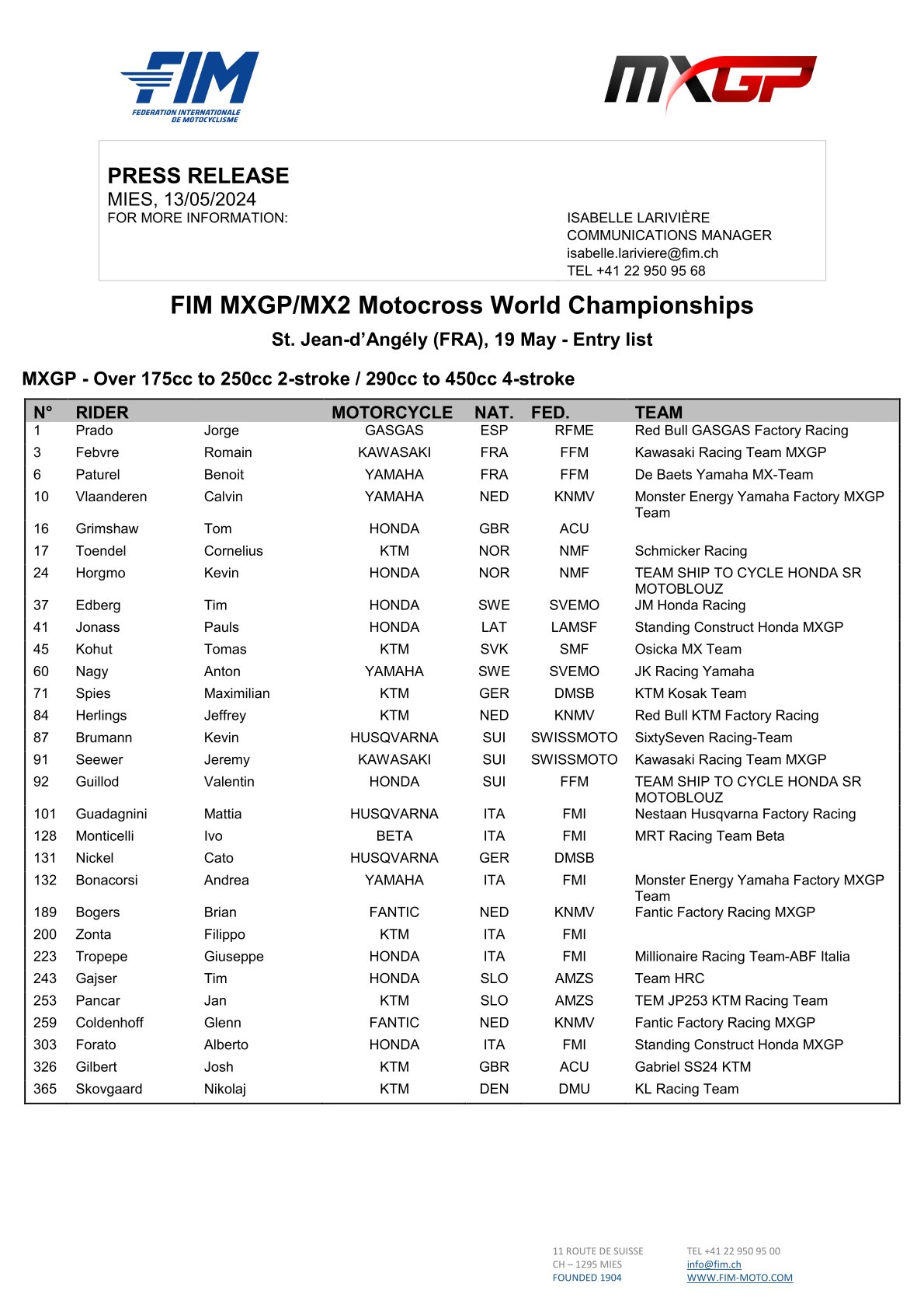 Deelnemerslijsten MXGP Frankrijk by motocrossplanet13 mei 2024 Bekijk nu wie er aankomend weekend tijdens de MXGP in Frankrijk aan de start staan! Bekijk de MX Vice Show met Tim Gajser en Giacomo Gariboldi