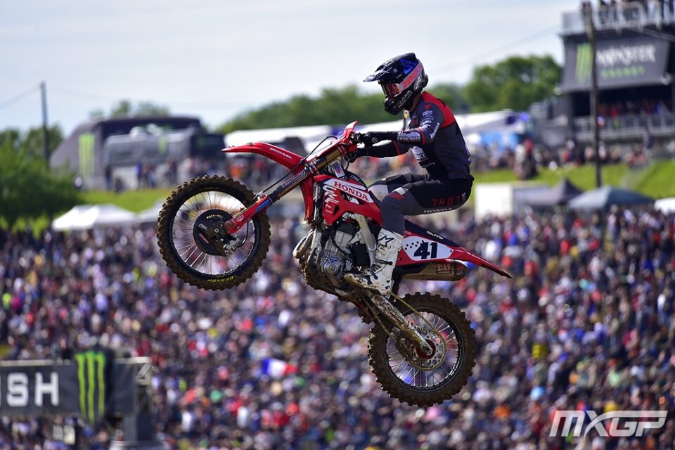 Pauls Jonass van het Standing Construct Honda MXGP team heeft een sterke zevende wedstrijd van het wereldkampioenschap MXGP in het Franse St. Jean d’Angely gereden. Jonass werd vijfde in de eerste manche en voegde hier een knappe derde plaats aan toe in de tweede manche.