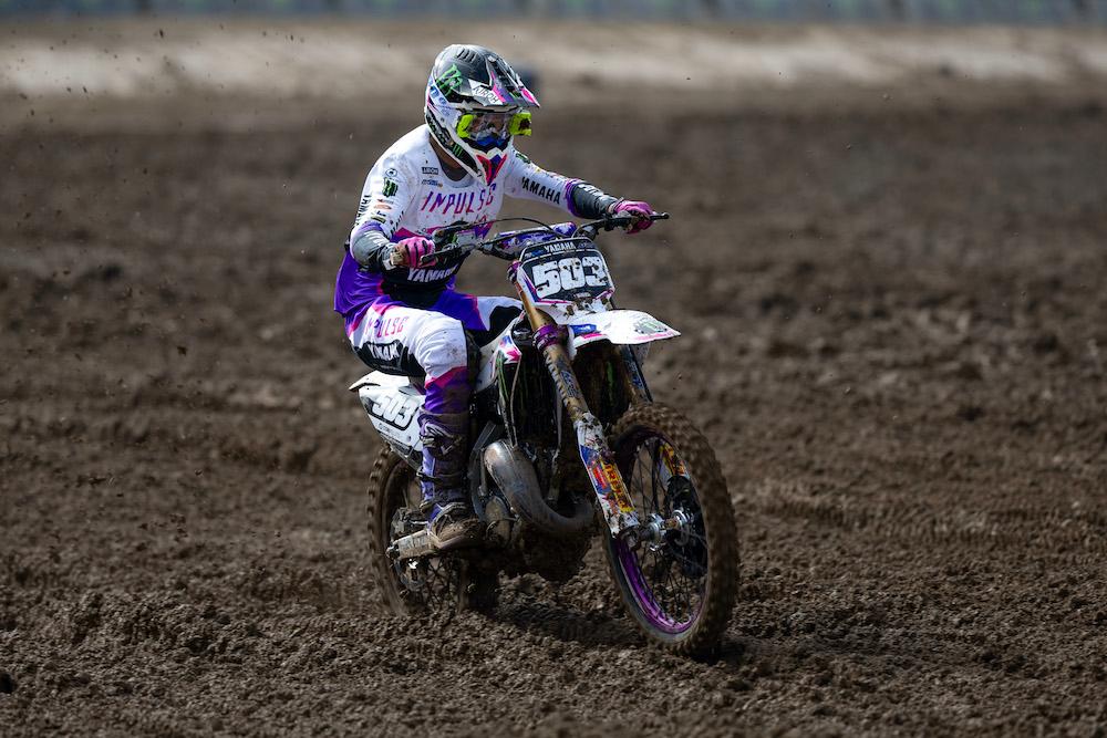 Het had ondertussen veel geregend in St. Jean d’Angely en tevens was de eerste manche van de EMX125 klasse een paar uur opgeschoven vanwege een ongeval in de MX2 klasse. Omdat het veel later verreden werd, was de baan erg zwaar en lagen er diepe sporen in met water.