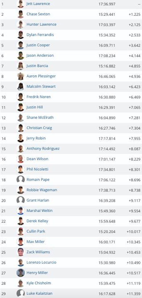 Jett Lawrence heeft in de tijdtraining van de 450 klasse op Fox Raceway de pole position weten te pakken. Lawrence was anderhalve seconde sneller dan Chase Sexton. Hunter Lawrence kwam uit op een derde tijd voor Dylan Ferrandis en Justin Cooper.