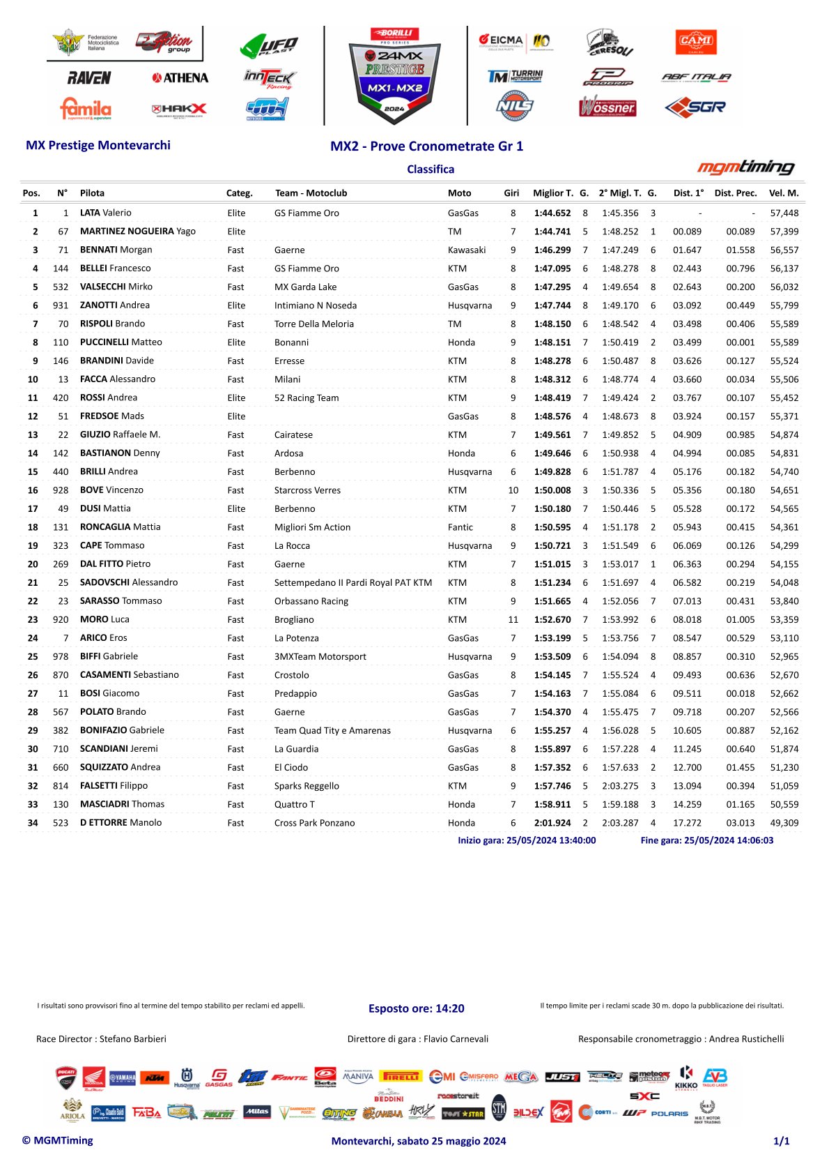 Valerio Lata en Jan Pancar hebben bij het Italiaans Kampioenschap in Montevarchi de pole positions weten te veroveren. Lata was het snelste in de MX2 klasse terwijl Pancar in de MX1 klasse als snelste over het circuit ging. In de andere groep was Andrea Bonacorsi het snelste, die deze wedstrijd mee pakt om meer wedstrijdritme op de 450 motor op te doen.
