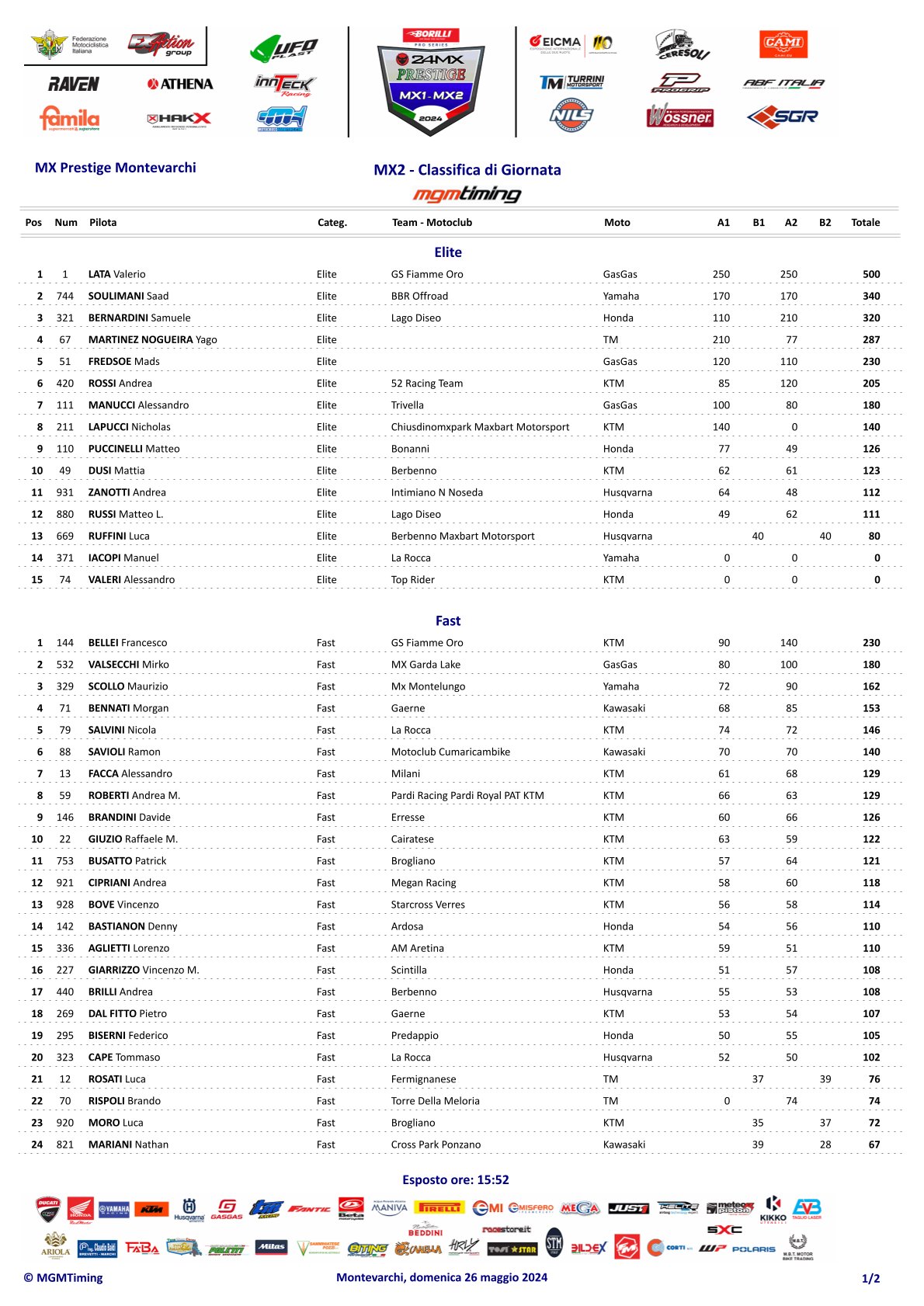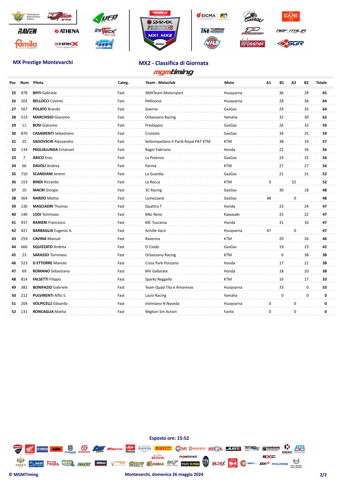 De MX2 klasse werd in beide manches een prooi van Valerio Lata. Hij pakte de dagzege voor Saad Soulimani 2-2 en Samuele Bernardini 6-2.