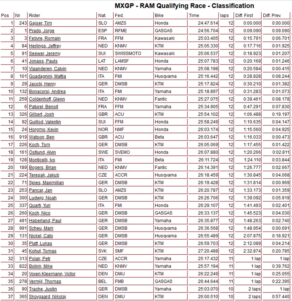 Tim Gajser heeft de kwalificatieheat van de MXGP klasse in Duitsland weten te winnen. Jorge Prado finishte als tweede voor Romain Febvre en Jeffrey Herlings.