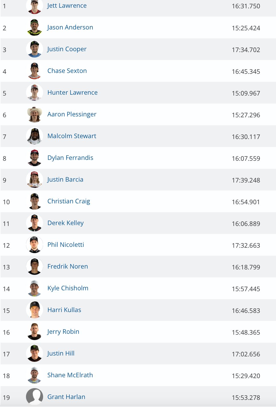 De rookie Casey Cochran en Jett Lawrence hebben in de tijdtraining van de AMA Pro Motocross in Hangtown de snelste tijd op de klok weten te zetten. Nederlander Robert Fobe kwam in de 450 klasse niet door de kwalificatie maar heeft in de laatste kans alsnog een kans! Bekijk de tijden hieronder: