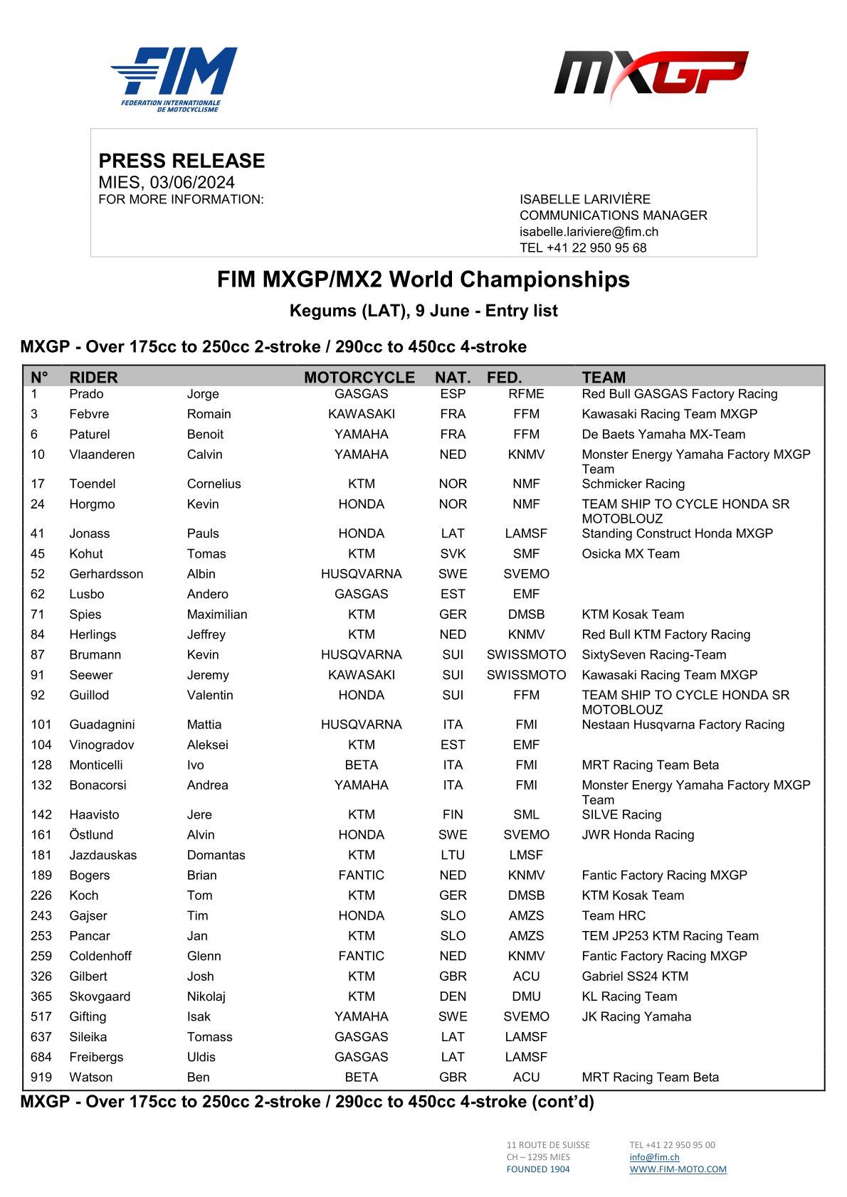 Deelnemerslijsten MXGP Letland bekend by motocrossplanet3 juni 2024 Aankomend weekend gaat het wereldkampioenschap verder op het circuit van Kegums in Letland. Bekijk nu wie er allemaal achter het starthek staan!