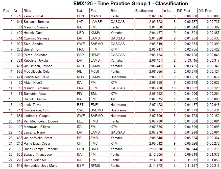 Dani Heitink heeft in de eerste groep van de EMX125 klasse in Letland de vierde tijd op de klok weten te zetten. Noel Zanocz was het snelste voor Thomass Saicans en Simone Mancini.