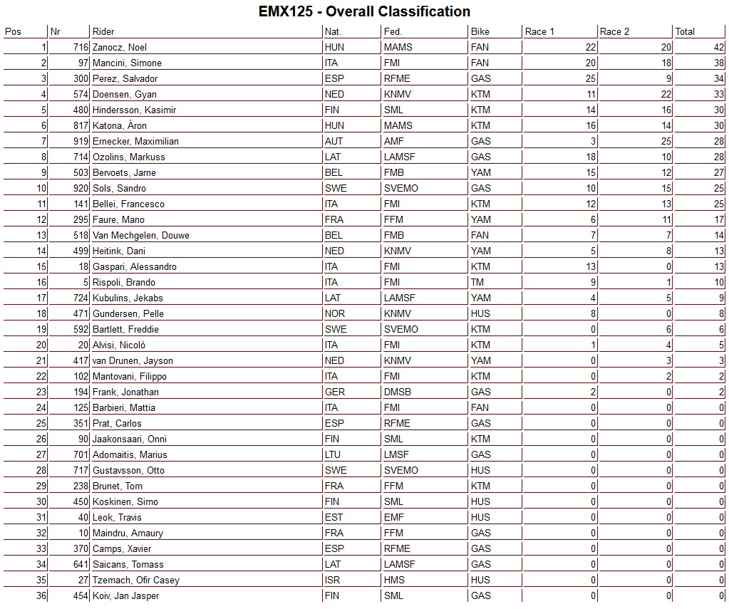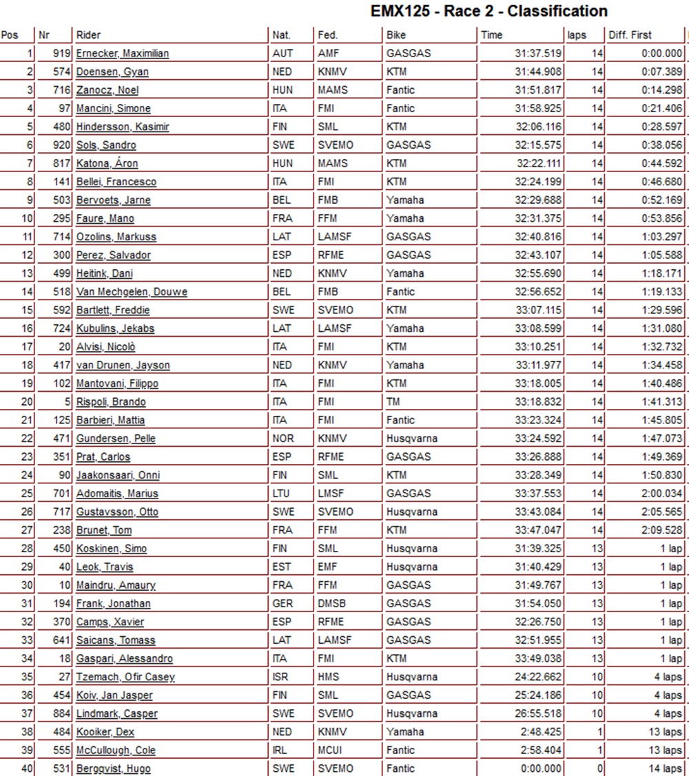 Gyan Doensen heeft een sterke tweede manche van het EMX125 kampioenschap in Letland gereden en is tweede geworden. Maximilian Ernecker wist de manche te winnen. Kampioenschapleider Noel Zanocz finishte achter Doensen als derde!