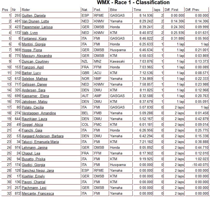 Minder dan de helft van de wedstrijd is verreden waardoor er normaal geen punten uitgegeven worden maar Infront Moto Racing deelde na de finish mede dat dit bekeken gaat worden.