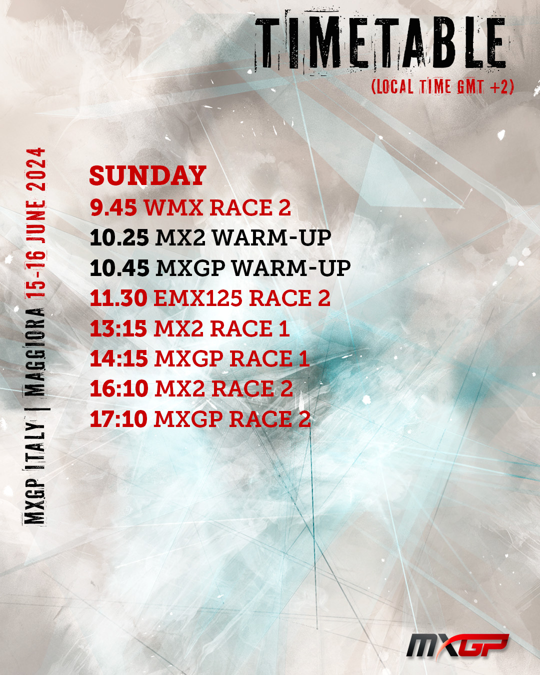 De organisatie van de Grand Prix in Maggiora is hard aan het circuit aan het werk maar de omstandigheden zijn nog te slecht waardoor besloten is om slechts 1 manche te rijden voor de dames en de EMX125 klasse.