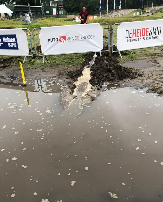 We pompen en werken nu met man en macht opdat het morgen kan drogen en dat we zondag de Road to the Zwarte Cross kunnen verrijden.