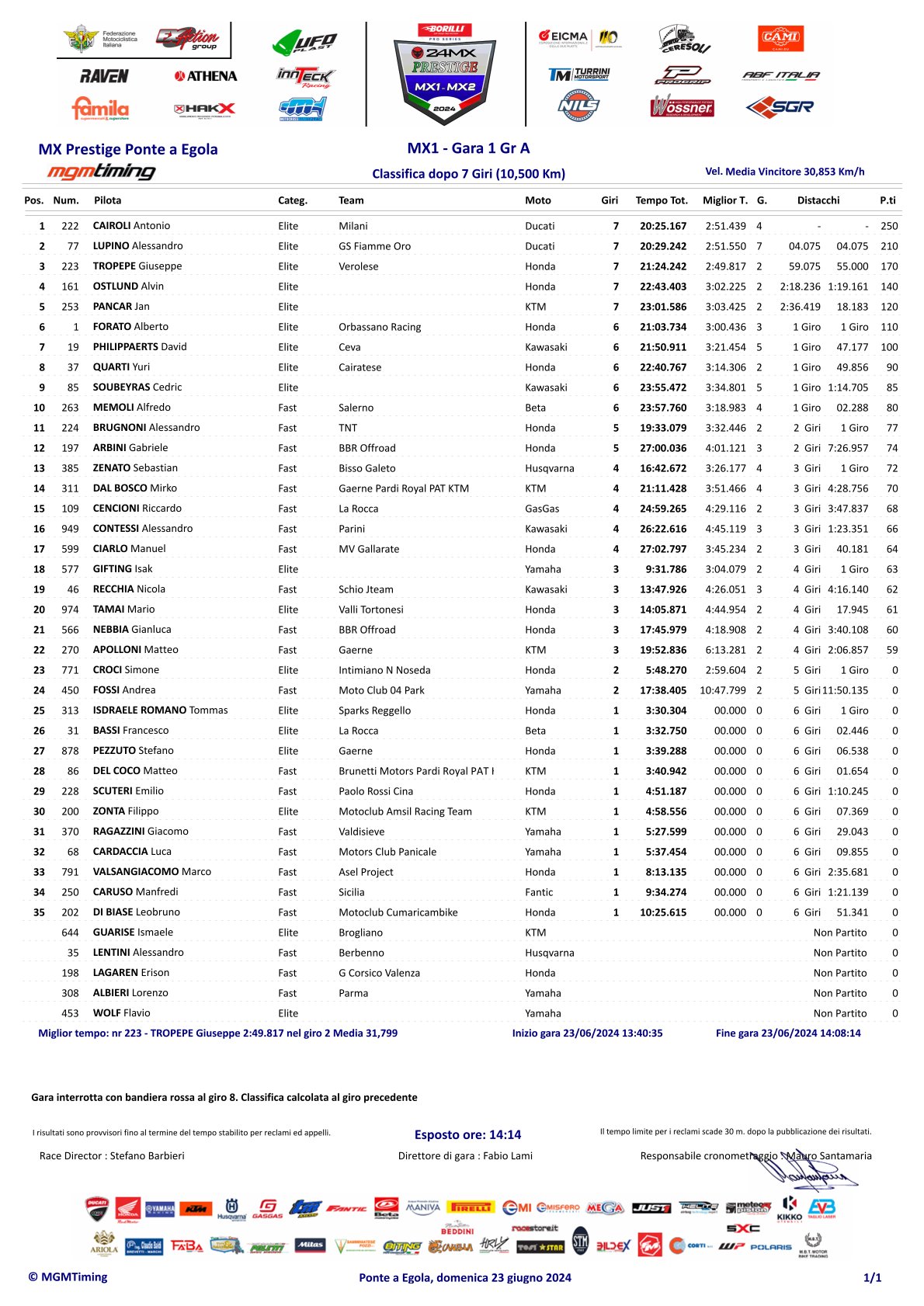 Antonio Cairoli heeft in modderige omstandigheden de eerste manche van het Italiaans kampioenschap in Ponte a Egola weten te winnen. Cairoli won de manche voor Alessandro Lupino en Giuseppe Tropepe.