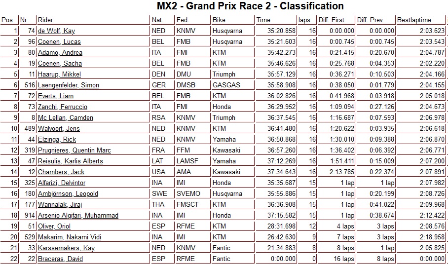 Kay de Wolf heeft beide manches van de Grand Prix in Indonesie weten te winnen. De Wolf won de tweede manche voor Lucas Coenen en Andrea Adamo.