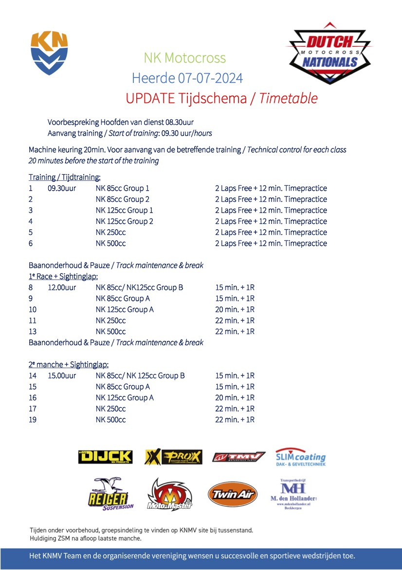 Op zondag 7 juli wordt de Dutch MX National in Heerde verreden. De opkomst voor de wedstrijd is groot want maar liefst 198 rijders hebben zich ingeschreven voor de wedstrijd.