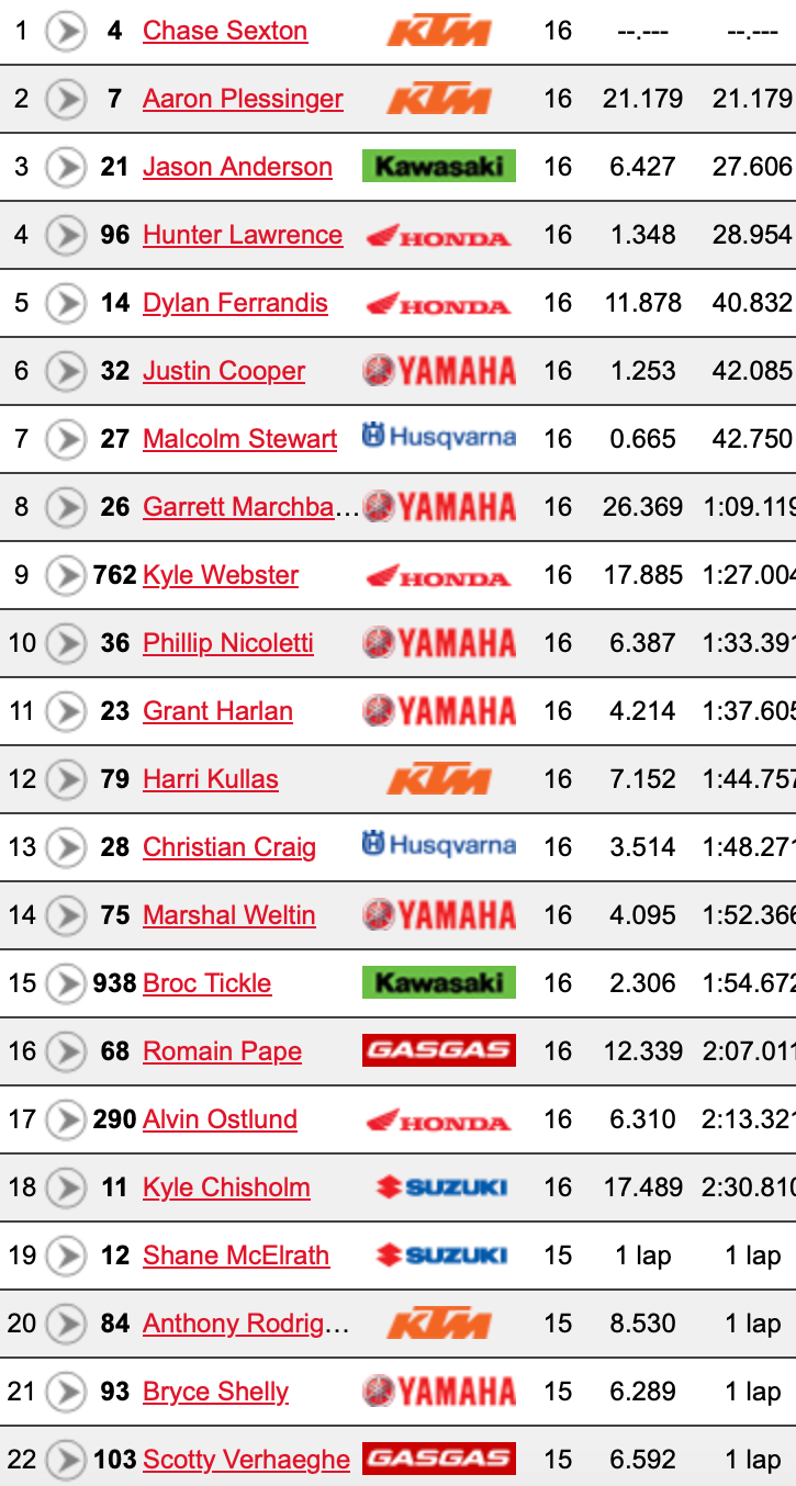 Chase Sexton heeft beide manches van de AMA Pro Motocross in Red Bud weten te winnen en is de nieuwe leider in de tussenstand van de 450 klasse. Sexton pakte de dagzege voor Aaron Plessinger 4-2 en Hunter Lawrence 2-4.
