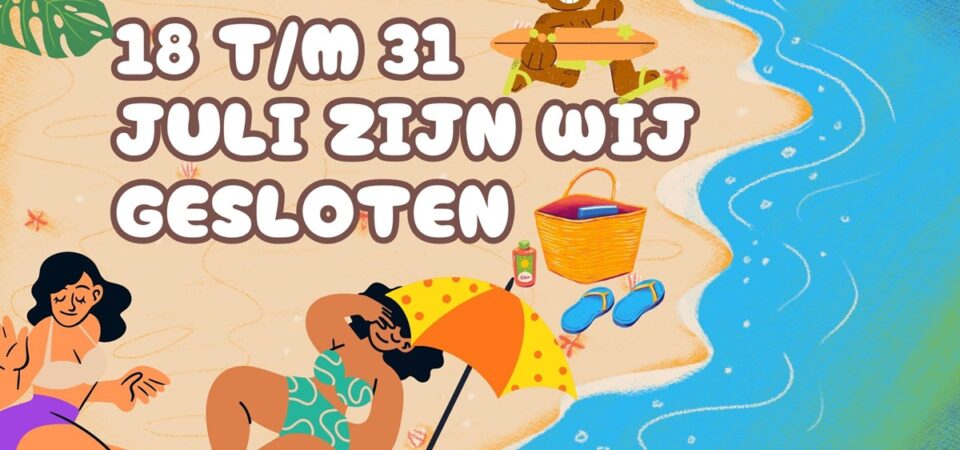 Wij zijn van 18 juli t/m 31 juli gesloten vanwege onze zomervakantie.