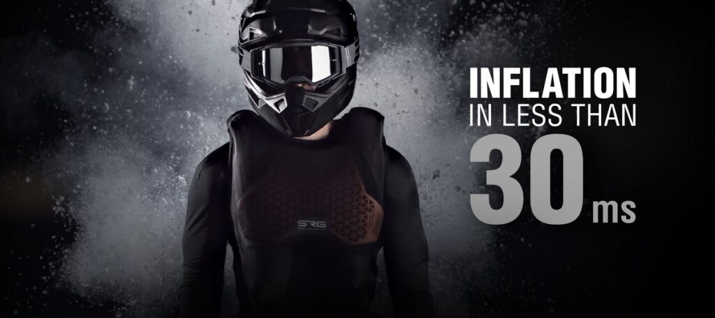 Het ontwerp van de SRG richtte zich op twee principes: detectie en bescherming. Het hart van de vest wordt gevormd door de In&box van In&motion. Dit hightech brein, ter grootte van een mobiele telefoon, aan de achterkant van de SRG meet 1.000 keer per seconde de positie van de rijder via de ingebouwde accelerometers. De realtime gegevens worden verwerkt door algoritmes die anticiperen op een crash door de airbag op te blazen. Het opblazen zelf gebeurt letterlijk twee keer sneller dan het knipperen met de ogen, namelijk 30 milliseconden of 0,030 van een seconde.