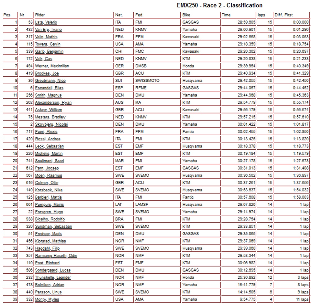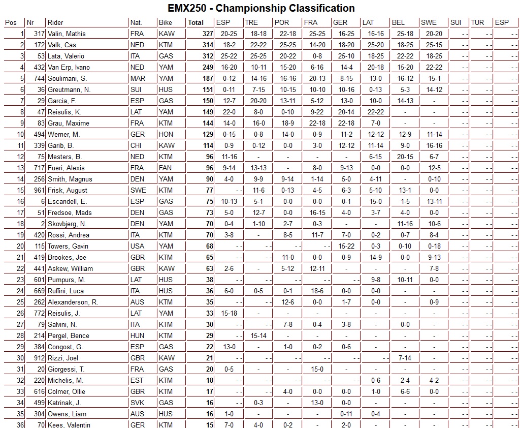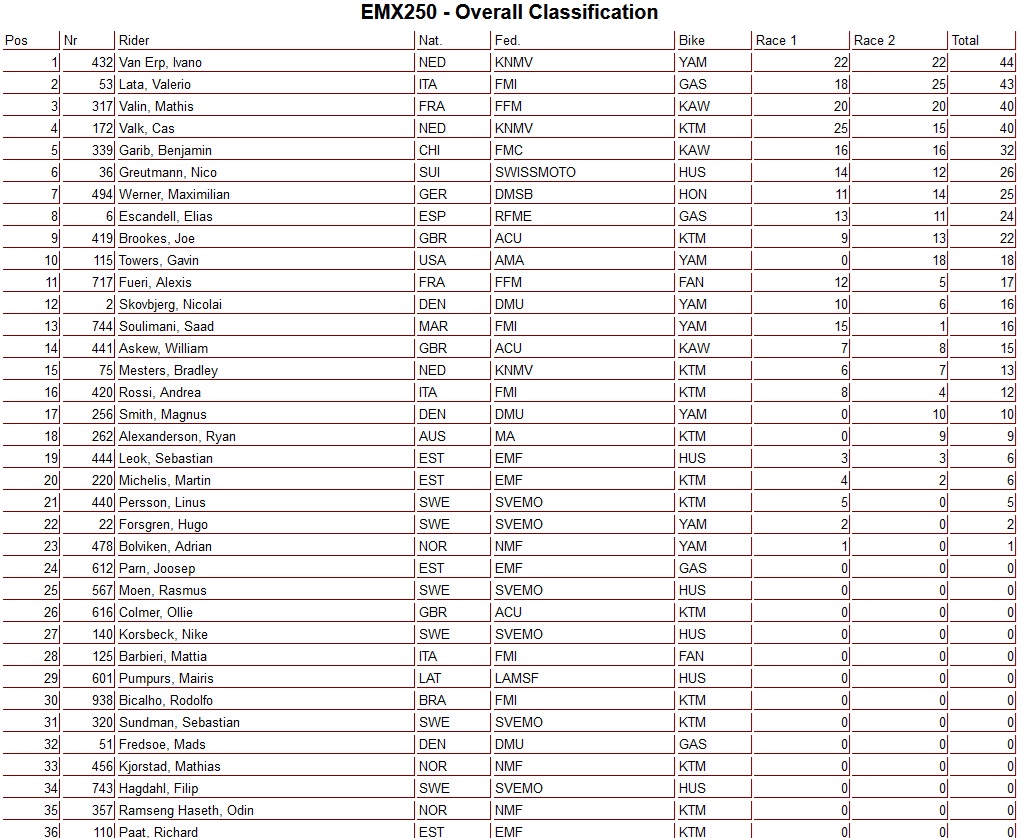Ivano van Erp heeft in het Zweedse Uddevalla de eindzege in de EMX250 klasse weten te pakken. Van Erp werd in beide manches tweede en pakte hiermee de eindzege. De overwinning in de tweede manche ging naar Valerio Lata voor van Erp en Mathis Valin.