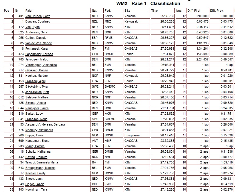 Lotte van Drunen wint eerste manche WMX Arnhem by motocrossplanet17 augustus 202417 augustus 2024 Lotte van Drunen heeft de eerste manche van de WMX klasse in Arnhem gewonnen voor Courtney Duncan en Lynn Valk. Nancy van de Ven werd knap zesde! Bekijk de volledige uitslag hieronder: Photocredits Full Spectrum