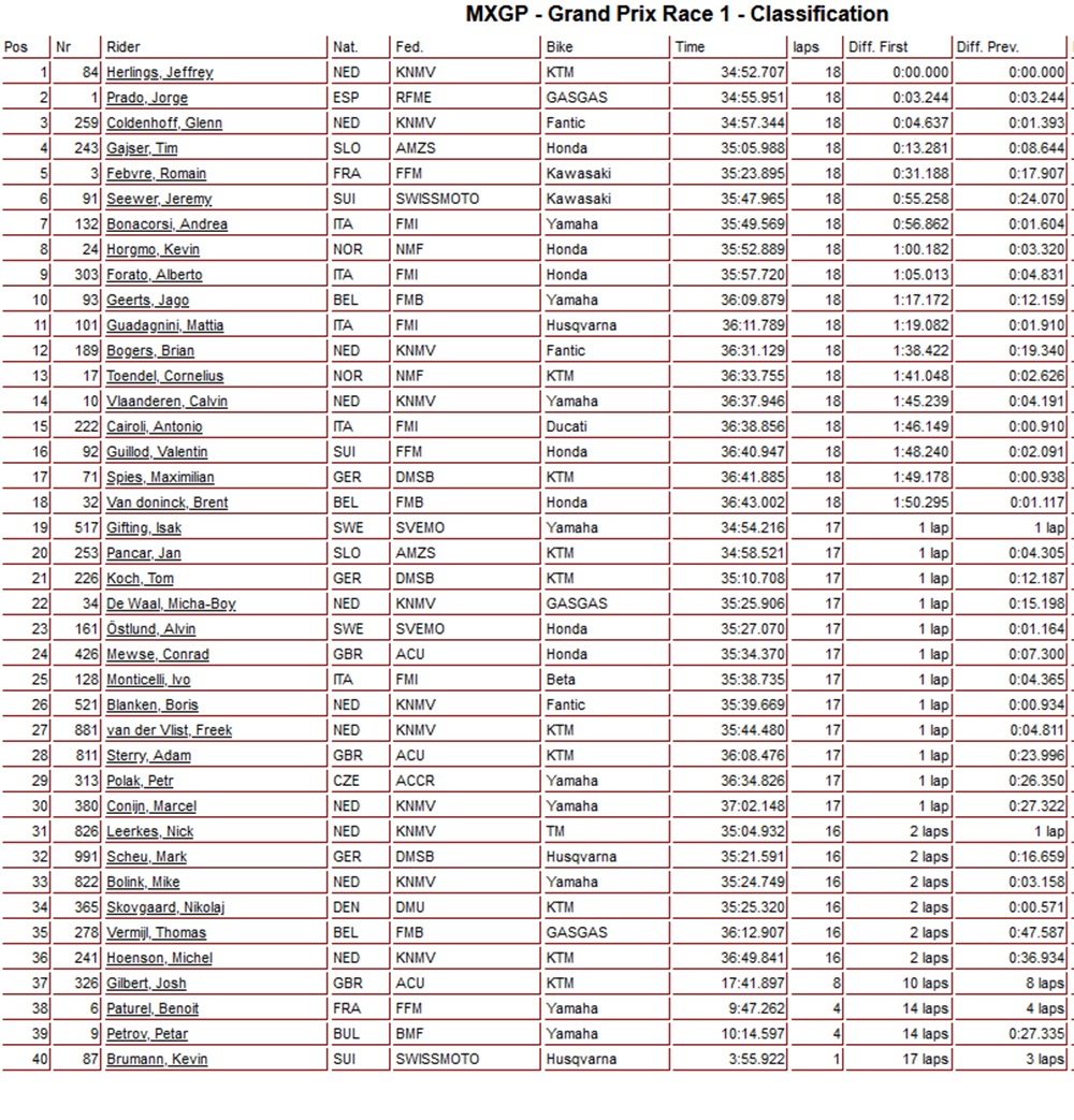 Herlings wint eerste manche MXGP in Arnhem, Coldenhoff 3 by motocrossplanet18 augustus 2024 Jeffrey Herlings heeft de eerste manche van de MXGP klasse in Arnhem gewonnen voor Jorge Prado en Glenn Coldenhoff. Bekijk de volledige uitslag hieronder: Photocredits Ray Archer
