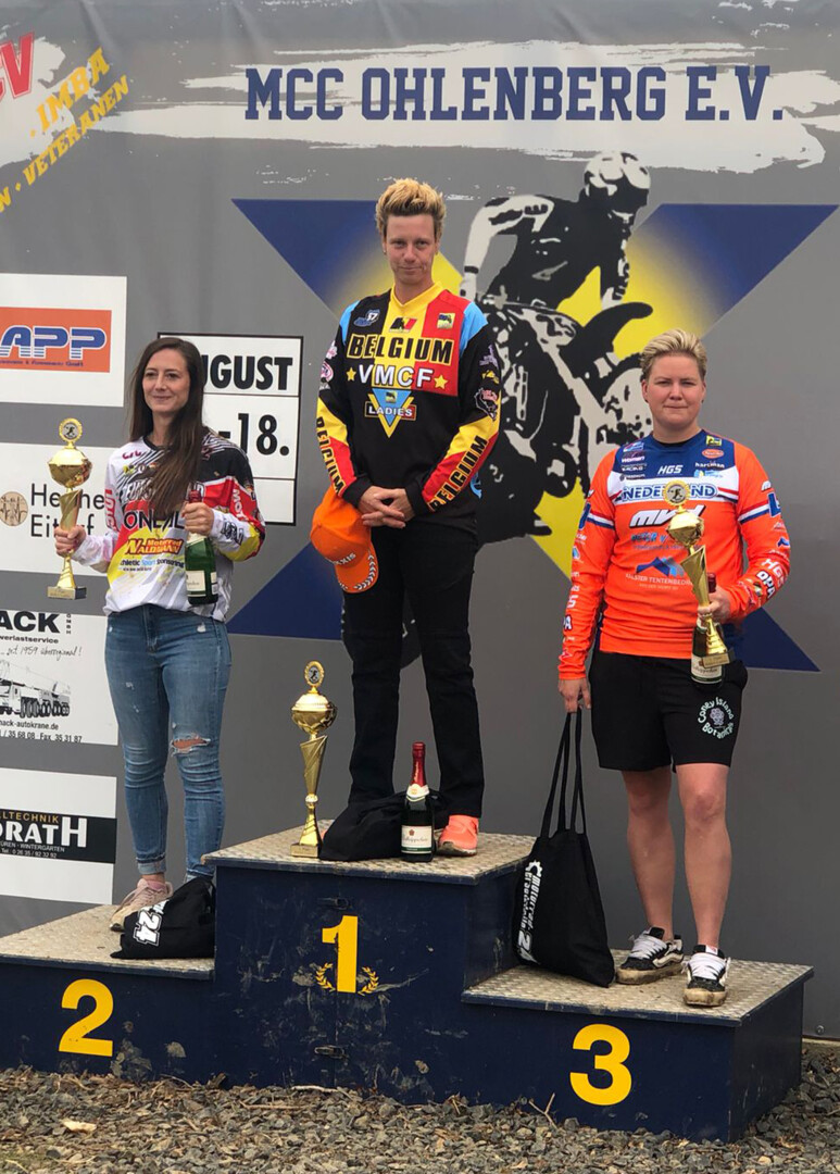 Afgelopen zondag (18 augustus) werd de volgende IMBA wedstrijd verreden. Het had helaas flink geregend in Duitsland. Door alle modder, het onderhoud aan de baan én aan de motoren, werd de tweede manche verlaat. De derde manche voor de dames kwam uiteindelijk te vervallen.