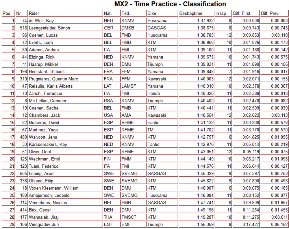 Kay de Wolf snelste in tijdtraining MX2 Zwitserland by motocrossplanet24 augustus 2024 Kay de Wolf was de snelste man op de baan in de tijdtraining MX2 in Zwitserland. Bekijk de uitslag hieronder: Photocredits Full Spectrum Media