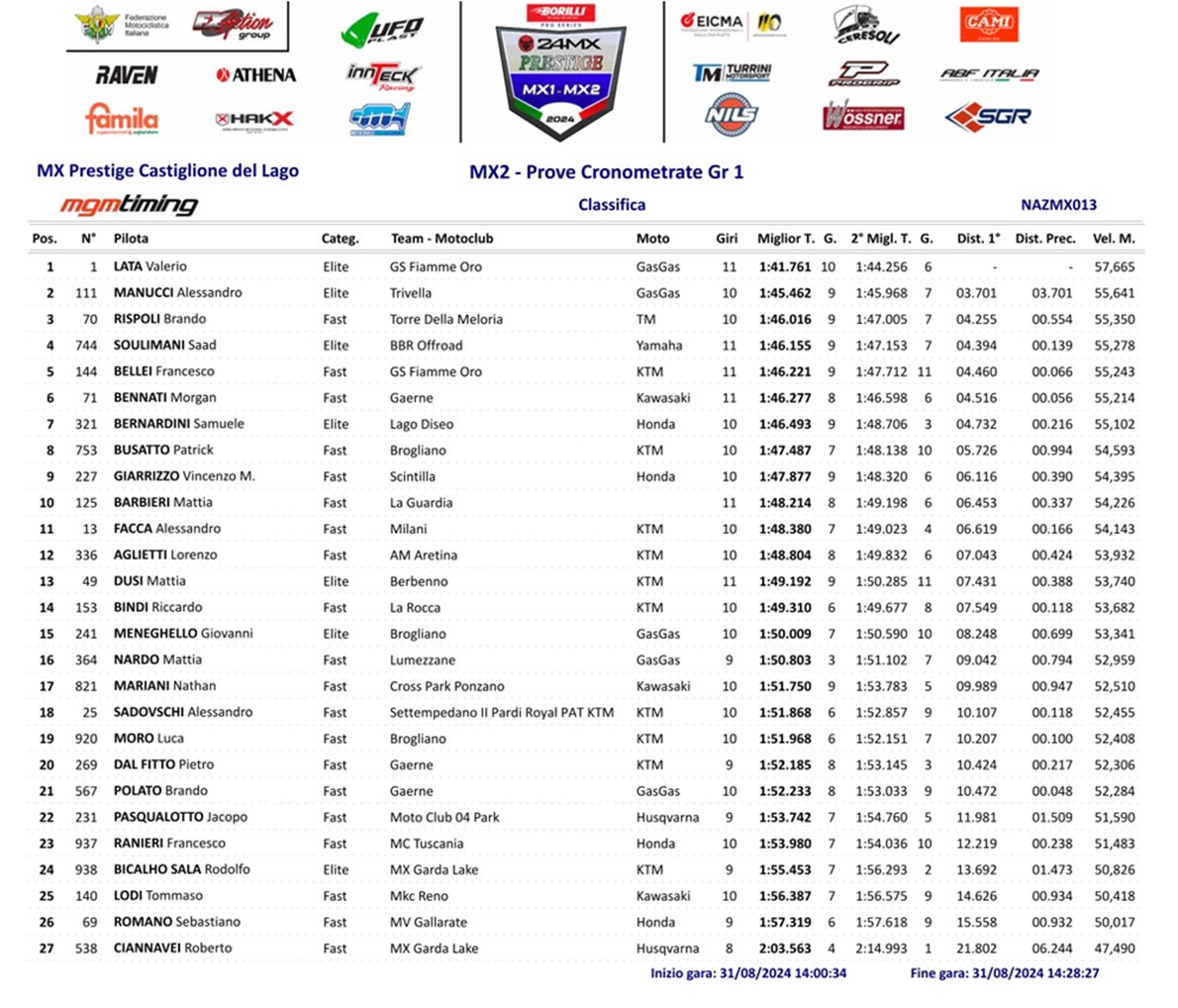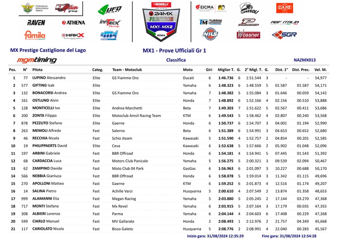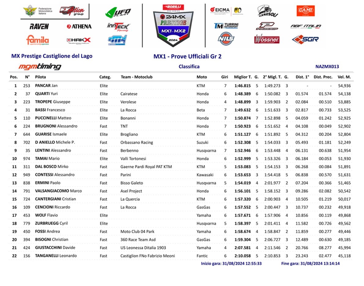 Lata en Lupino pakken pole position in het Italiaans Kampioenschap by motocrossplanet31 augustus 202431 augustus 2024 Valerio Lata en Alessandro Lupino hebben vandaag in het Italiaans Kampioenschap in Castiglione del Lago de pole positions weten te pakken. Bekijk de volledige uitslagen hieronder: Photocredits Juan Pablo Acevedo