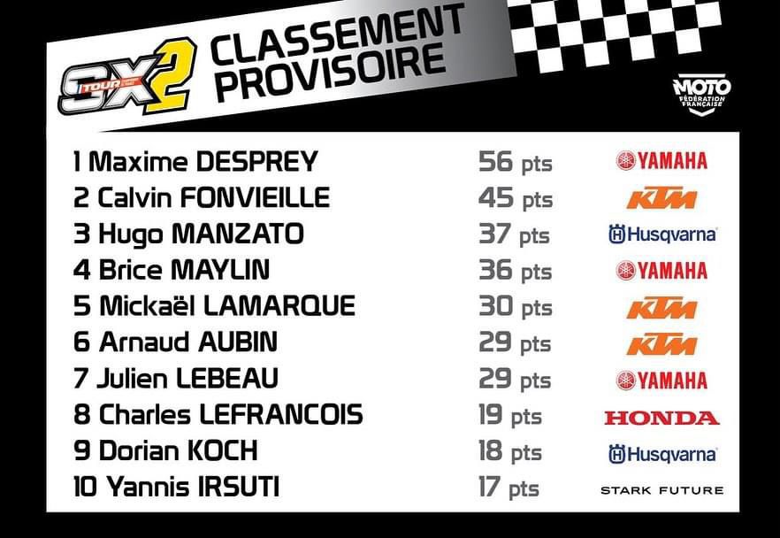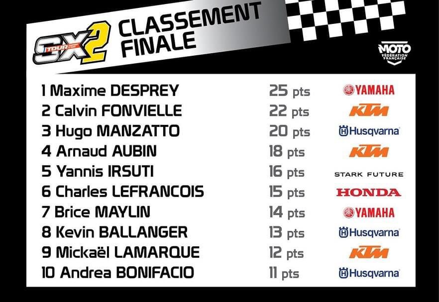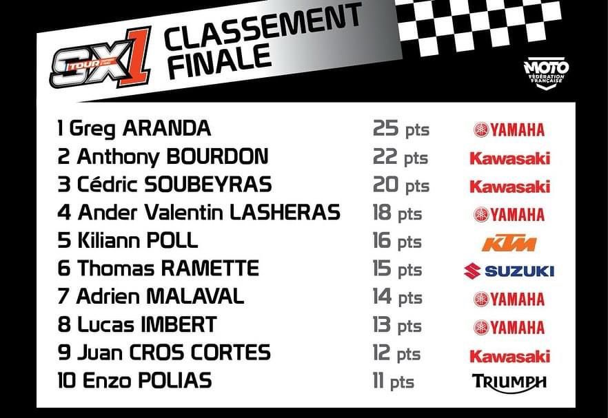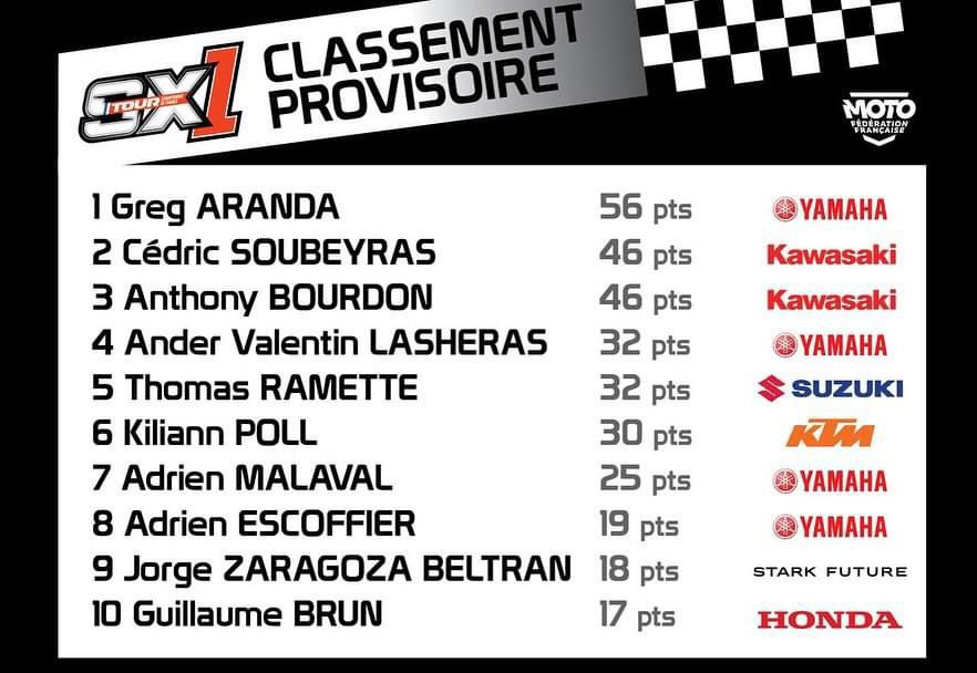 Desprey en Aranda winnen SX Tour by motocrossplanet1 september 2024 Maxime Desprey en Greg Aranda hebben de SX Tour in Saint-Georges-de-Montaigu gewonnen. Bekijk de volledige uitslagen en de nieuwe tussenstanden hieronder:
