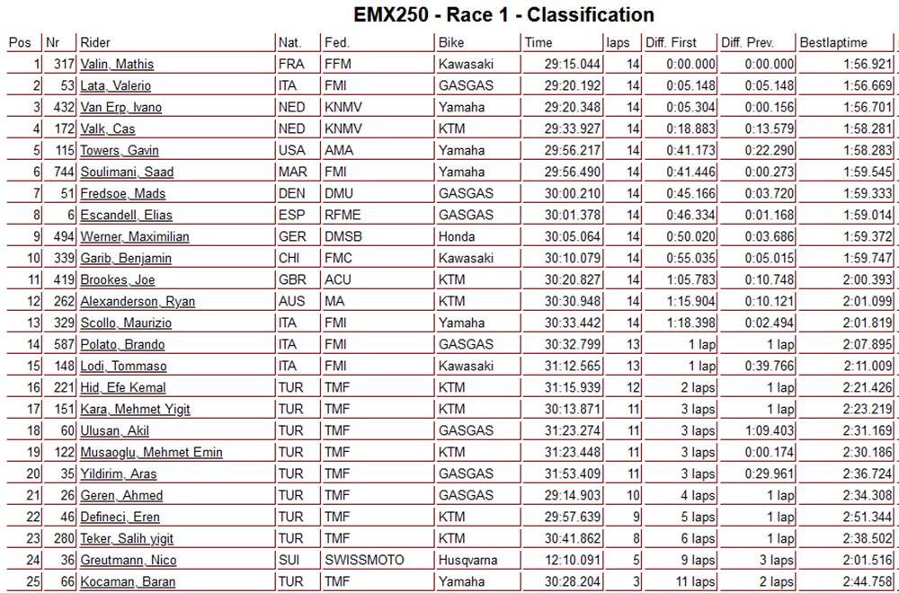 Van Erp en Valk derde en vierde in eerste manche Turkije by motocrossplanet7 september 20247 september 2024 Ivano van Erp en Cas Valk zijn in de eerste manche van de EMX250 klasse in Turkije derde en vierde geworden. Van Erp streed tot aan de finishlijn om de tweede plaats met Valerio Lata. De winst ging naar Mathis Valin! Photocredits Full Spectrum Media